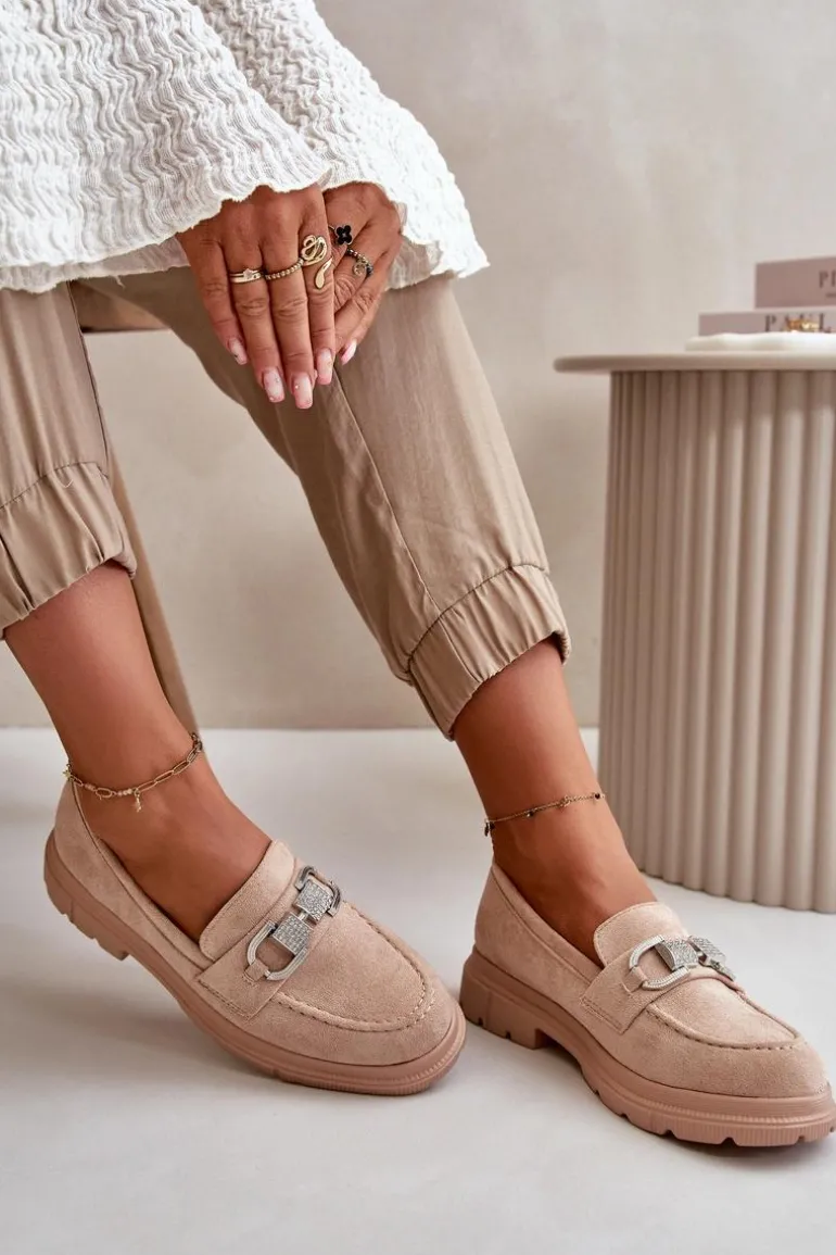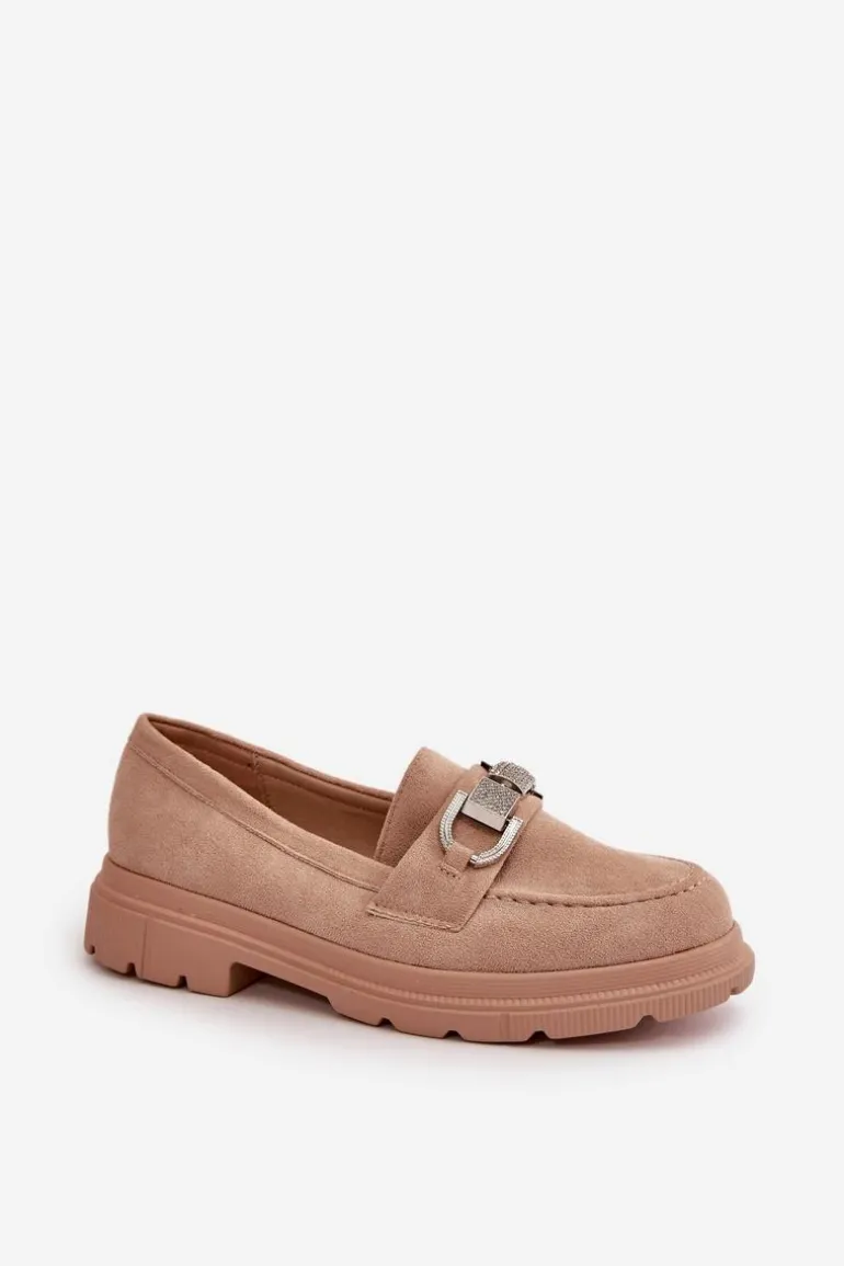 Damskie mokasyny wykonane z eko zamszu, które łączą styl i wygodę. Klasyczny fason wzbogacony o dekoracyjny pasek z przodu, który dodaje elegancji i unikalnego charakteru. Idealne zarówno do casualowych, jak i bardziej formalnych stylizacji, te mokasyny są świetnym wyborem na co dzień. Przy wyborze rozmiaru prosimy sugerować się tabelą rozmiarów.