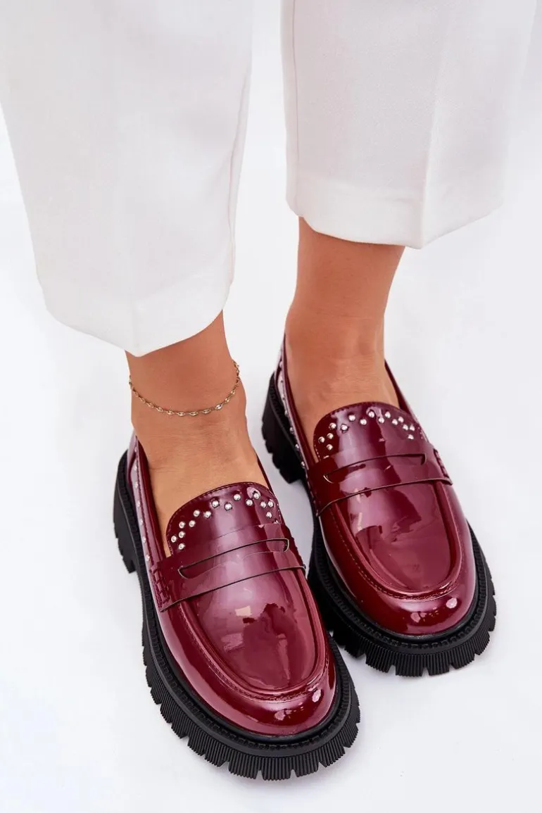 Stylowe mokasyny damskie wykonane z lakierowanej eko skóry. Osadzone na płaskim obcasie. Zaokrąglone noski dodają im subtelnej lekkości, a cholewka ozdobiona zdobieniem nadaje wyjątkowego charakteru. Te mokasyny doskonale pasują do eleganckich oraz casualowych stylizacji, wprowadzając nowoczesny akcent do każdej okazji. Idealne na co dzień, gwarantują komfort i modny wygląd przez cały dzień. Przy wyborze rozmiaru prosimy sugerować się tabelą rozmiarów.