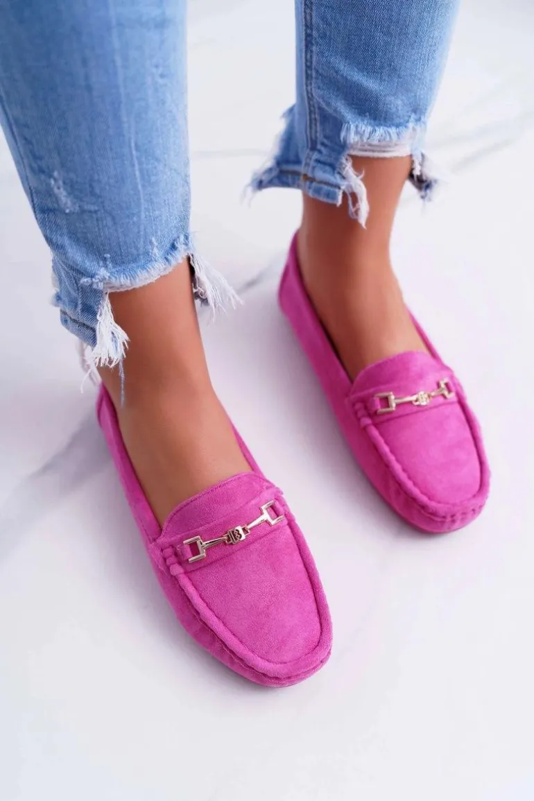 Mokasyny Damskie Lekkie Eko-zamsz Fuksja Think