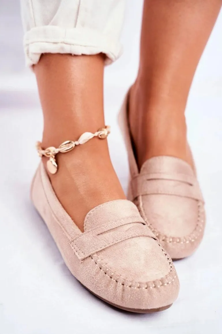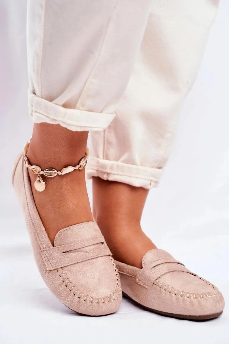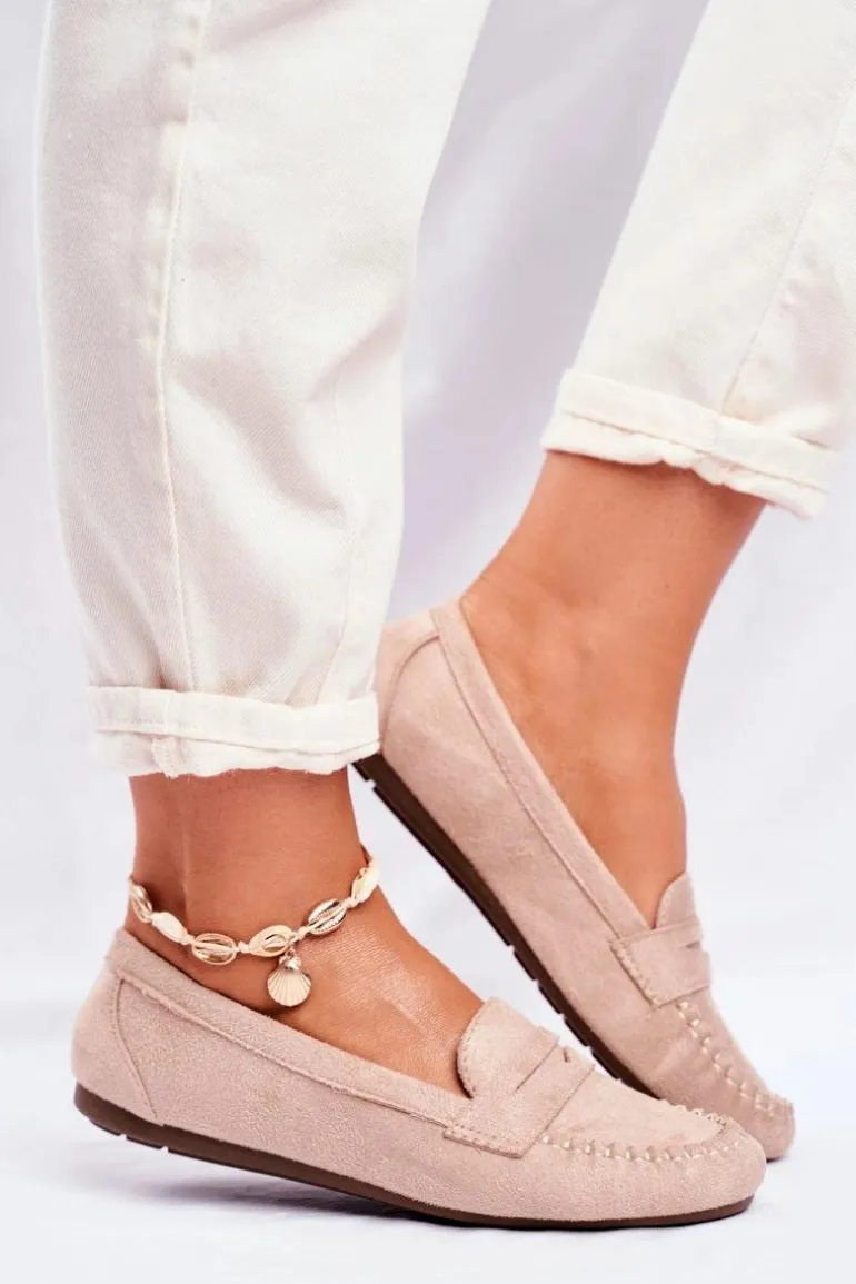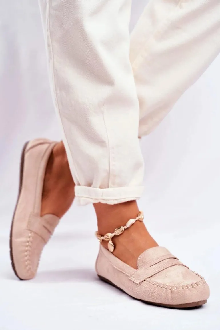 Mokasyny Damskie Materiałowe Beżowe Panay