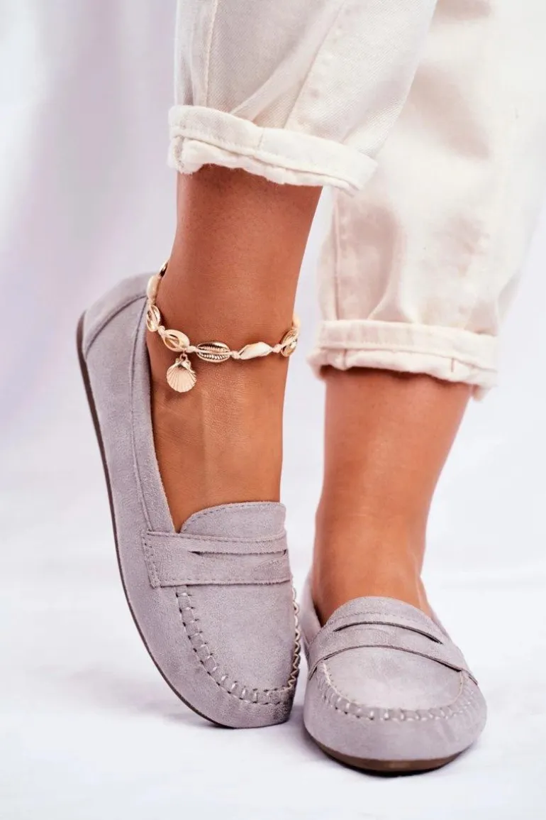 Mokasyny Damskie Materiałowe Szare Panay