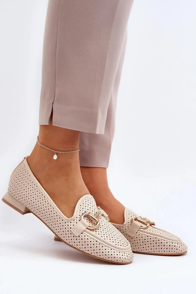 Stylowe mokasyny z eko skóry to nie tylko elegancki dodatek, ale także gwarancja komfortu podczas noszenia. Ich miękka wkładka zapewnia wygodę nawet podczas długiego użytkowania. Ozdoba na przodzie cholewki dodaje im uroku i wyjątkowego charakteru. Mokasyny posiadają płaski obcas, co sprawia, że są idealnym wyborem zarówno do spodni, jak i sukienek. Przy wyborze rozmiaru prosimy sugerować się tabelą rozmiarów.