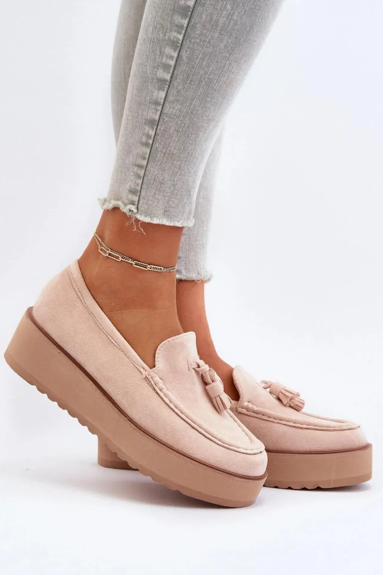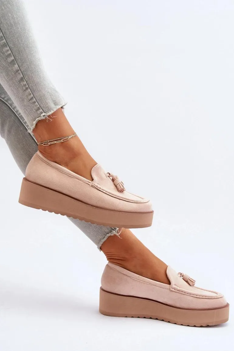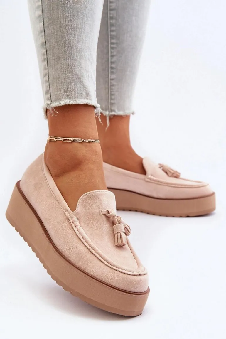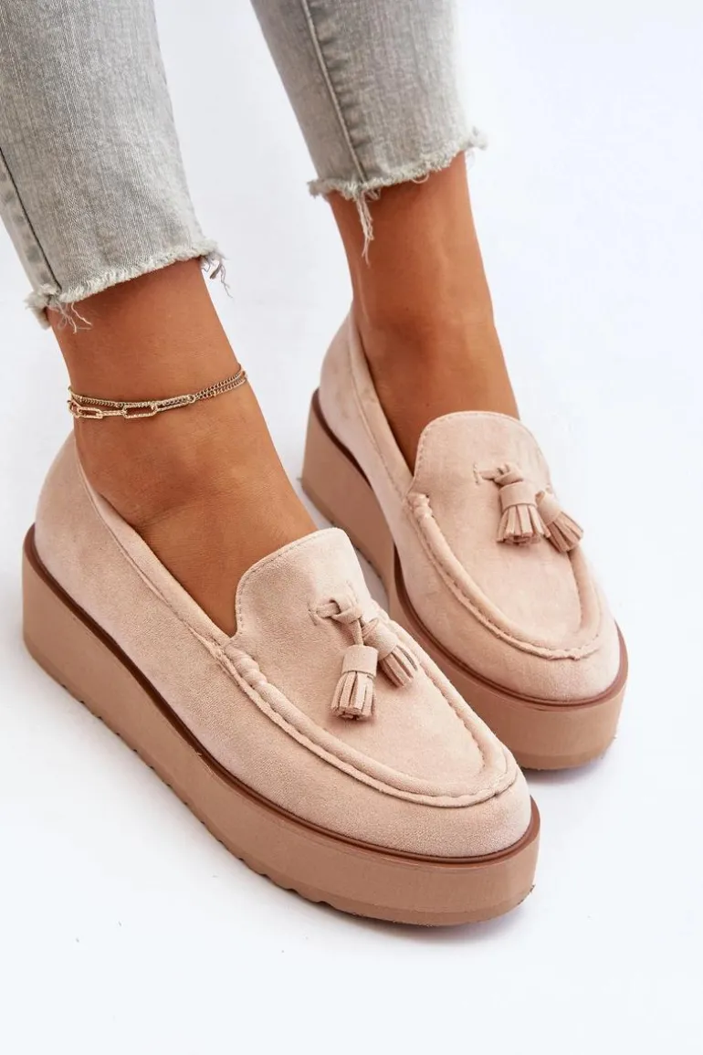 Mokasyny Damskie Na Platformie Z Frędzlami Jasnobeżowe Mialani