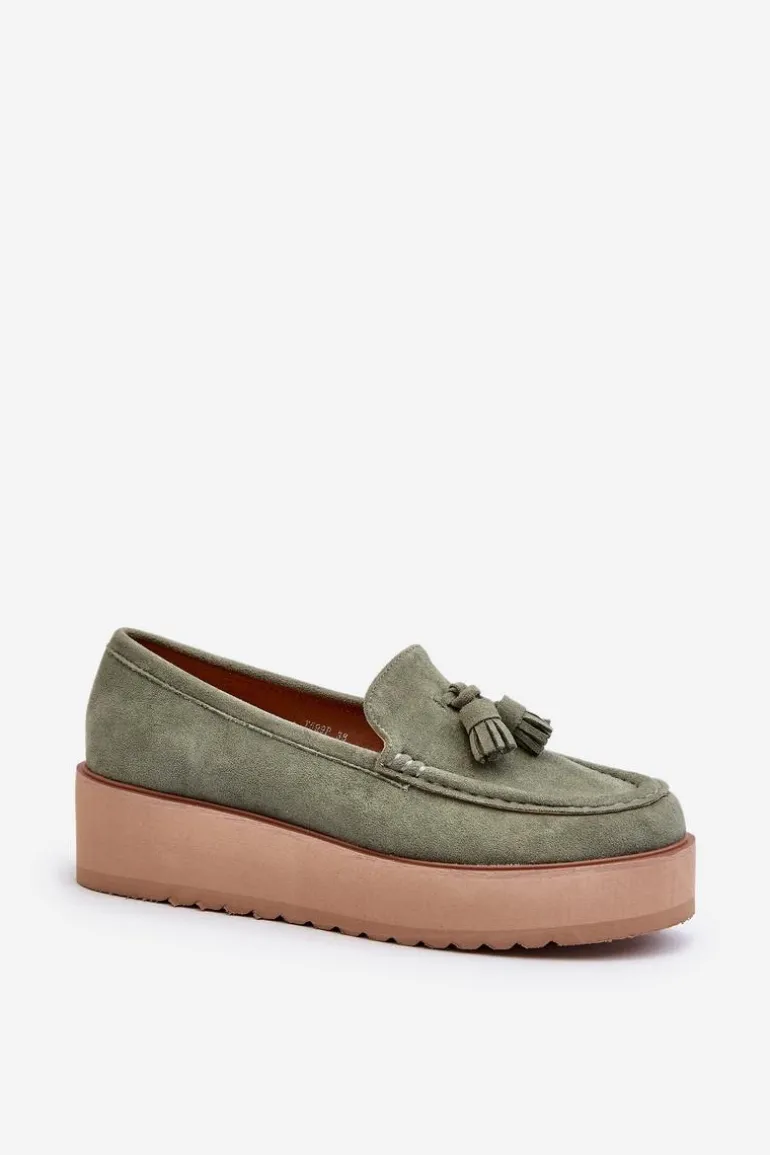 Klasyczne mokasyny damskie osadzone na platformie. Ozdobne frędzle na przodzie nadają im unikalnego stylu. Noski zaokrąglone, lekko usztywniony zapiętek. Idealne zarówno do casualowych, jak i bardziej wyrafinowanych stylizacji, te mokasyny będą doskonałym dodatkiem do Twojej garderoby! Przy wyborze rozmiaru prosimy sugerować się tabelą rozmiarów.
