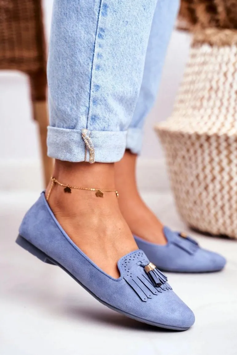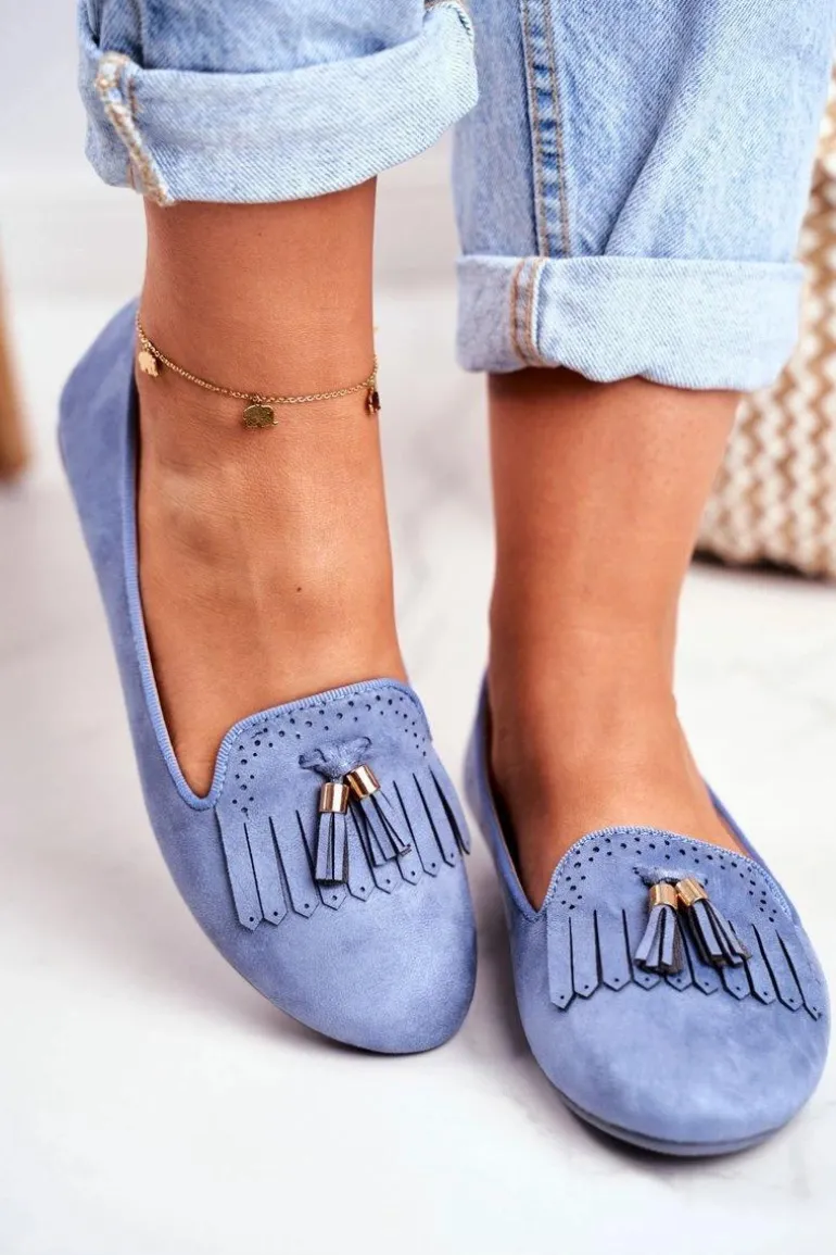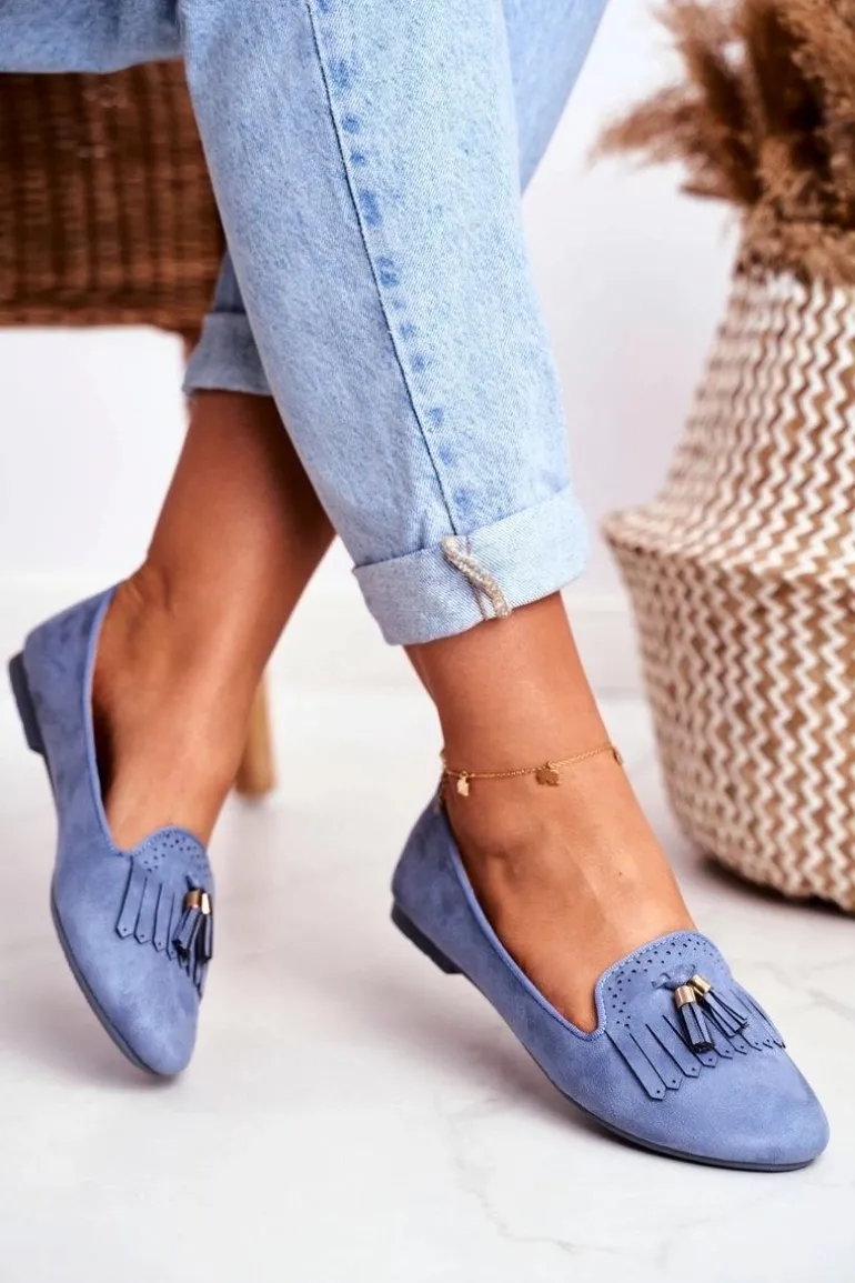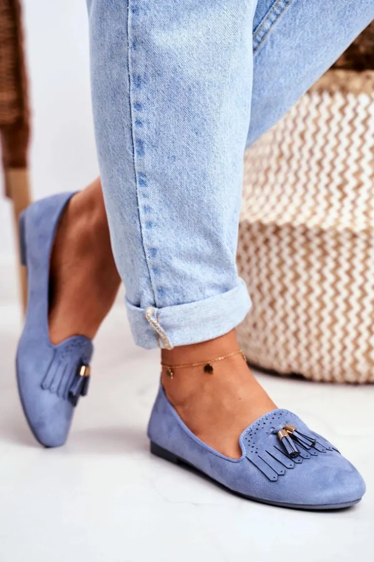 Mokasyny Damskie Niebieskie Lordsy Frędzle Therese