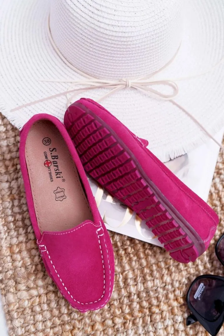 Mokasyny Damskie Skóra Zamszowa Fuksja Tenzion