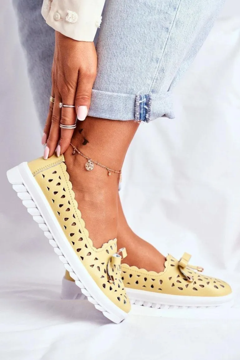 Mokasyny Damskie Skórzane Ażurowe LR71515 Żółte Murrieta