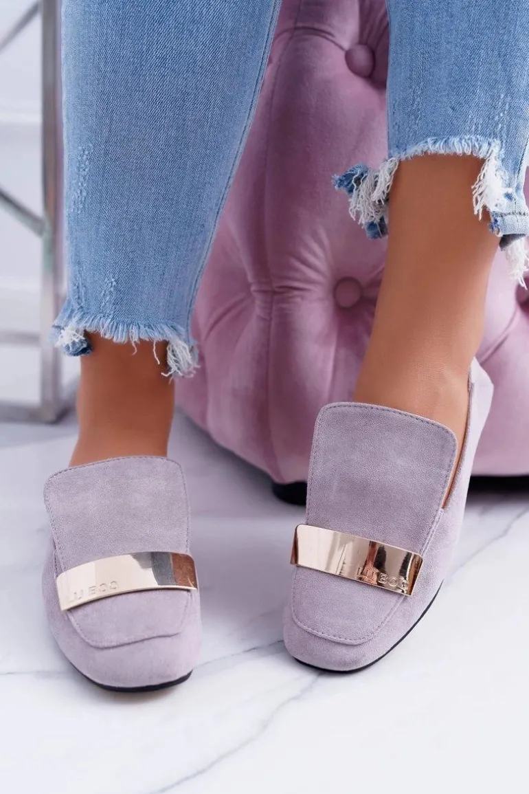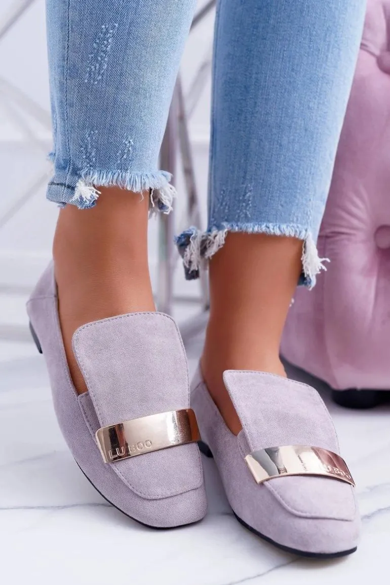 Mokasyny Damskie Szare Z Blaszką Złote Lordsy Lu Boo Harlem