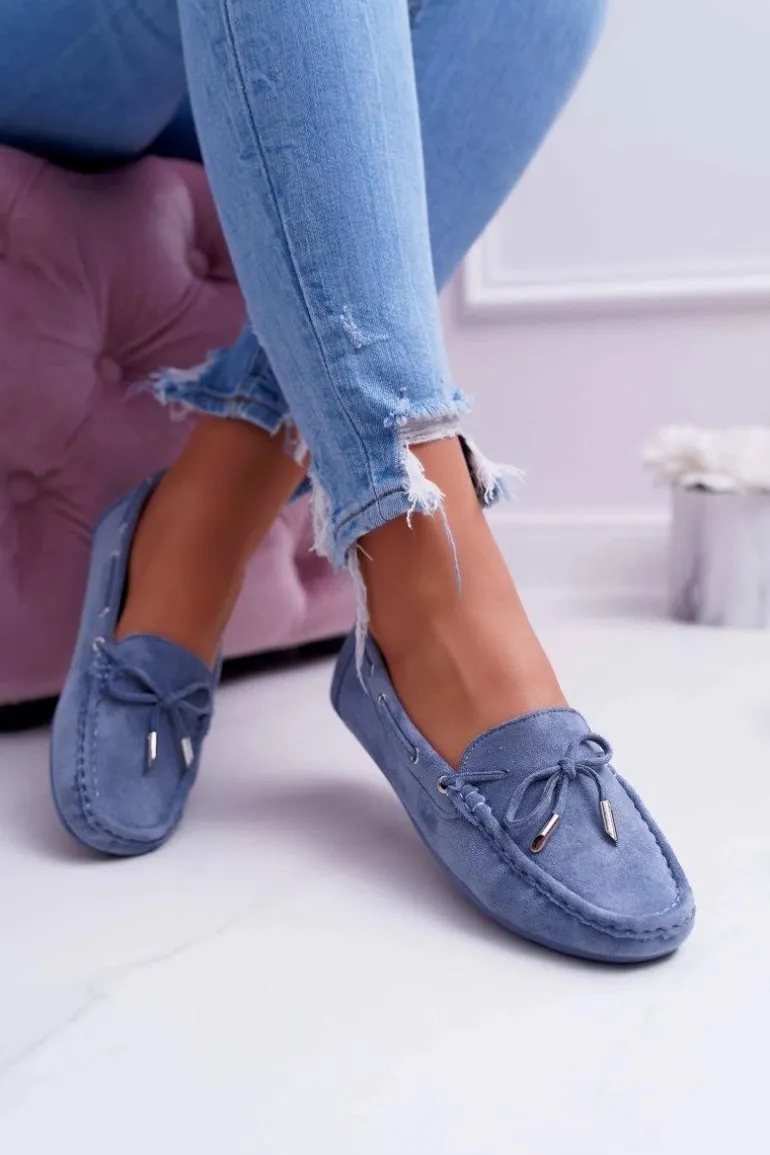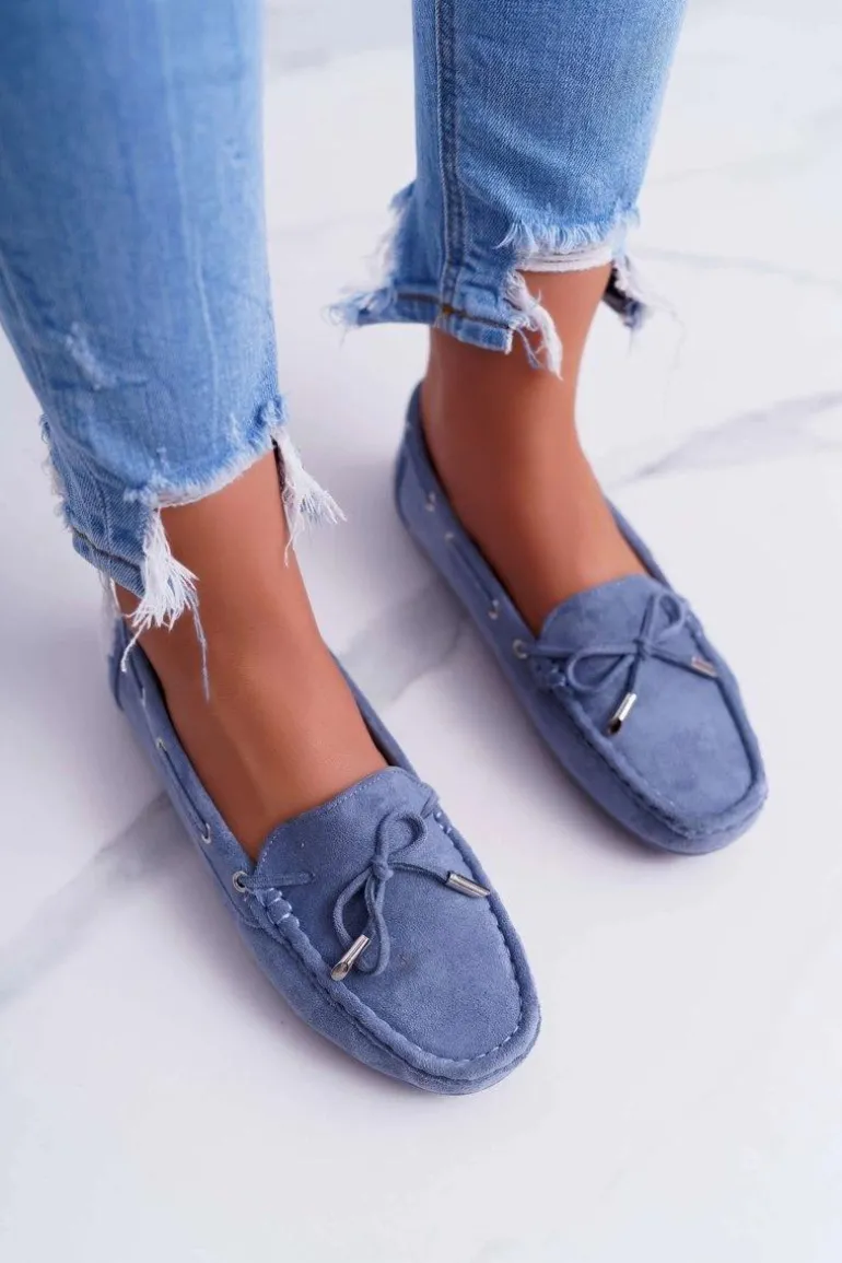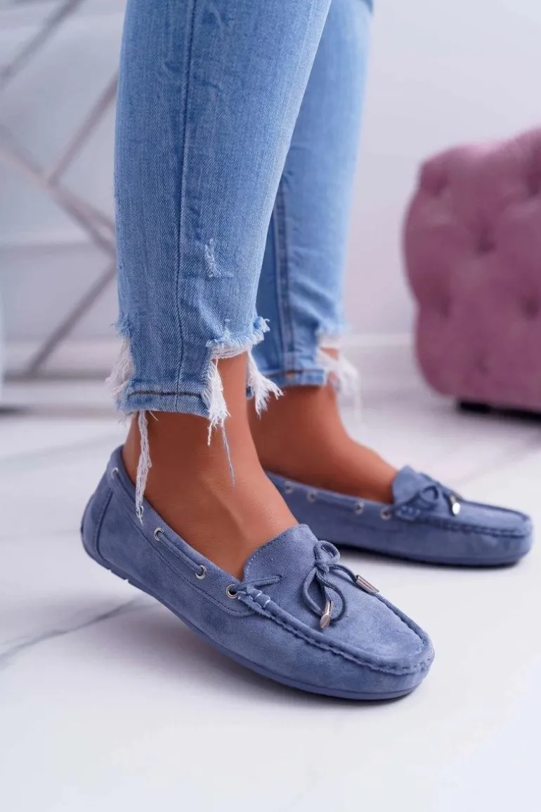Mokasyny Damskie Wygodne Eko-zamsz Niebieskie Memfi