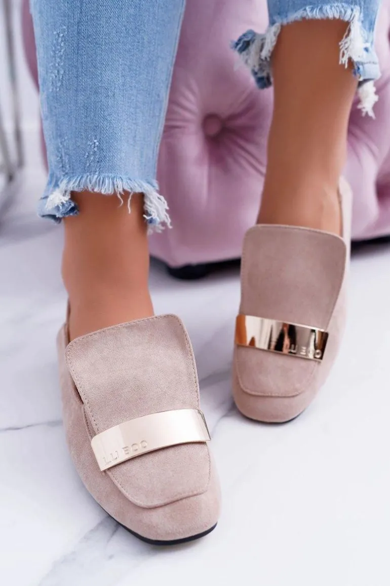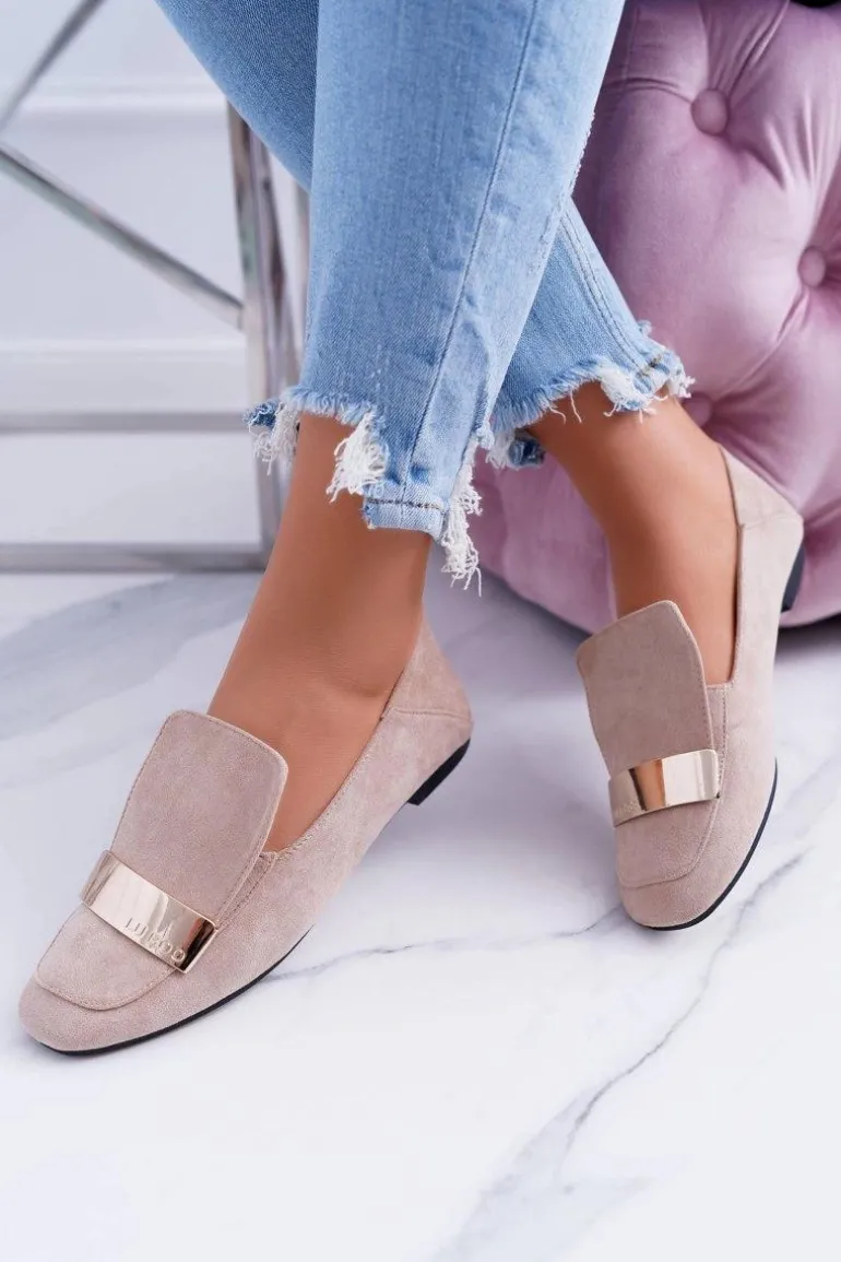 Mokasyny Damskie Z Blaszką Złote Lordsy Beż Lu Boo Harlem