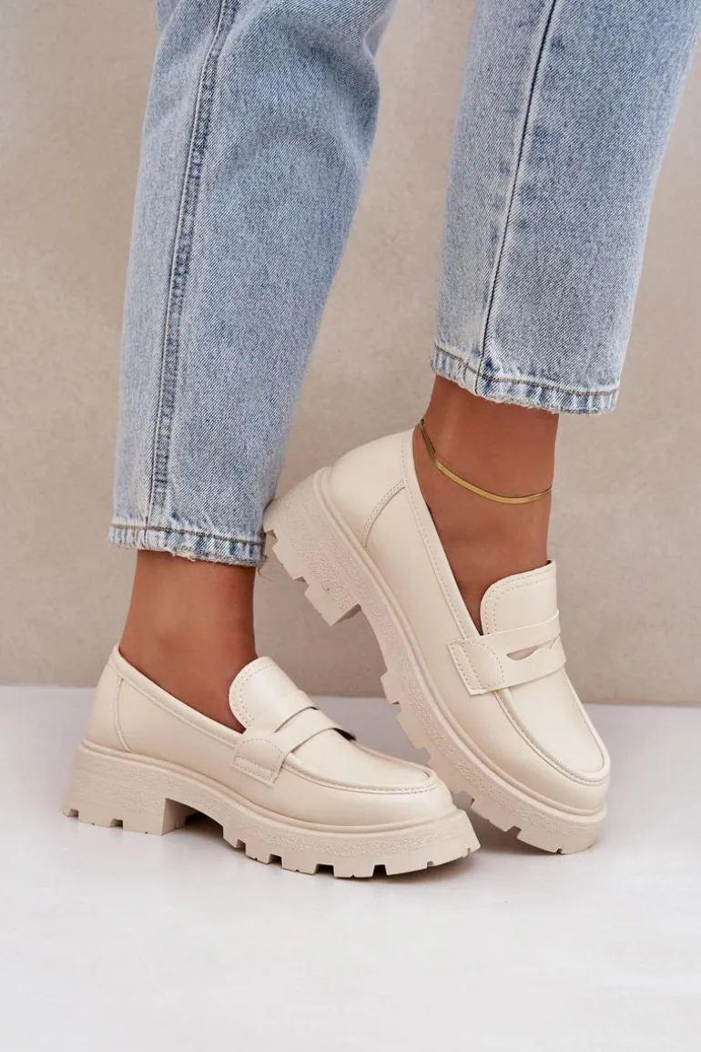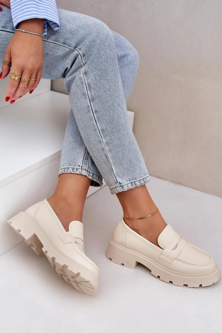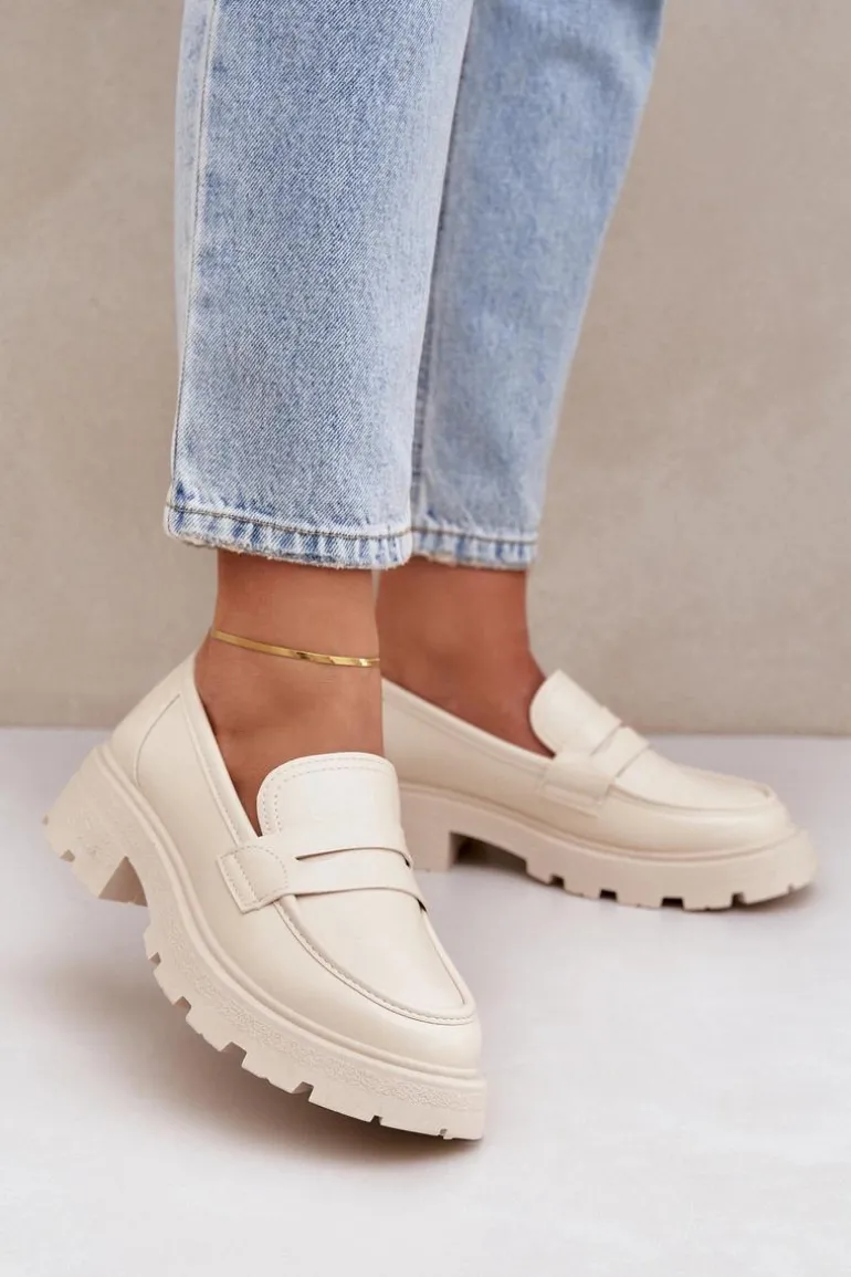 Mokasyny Damskie Z Eko Skóry Jasnobeżowe Sendall