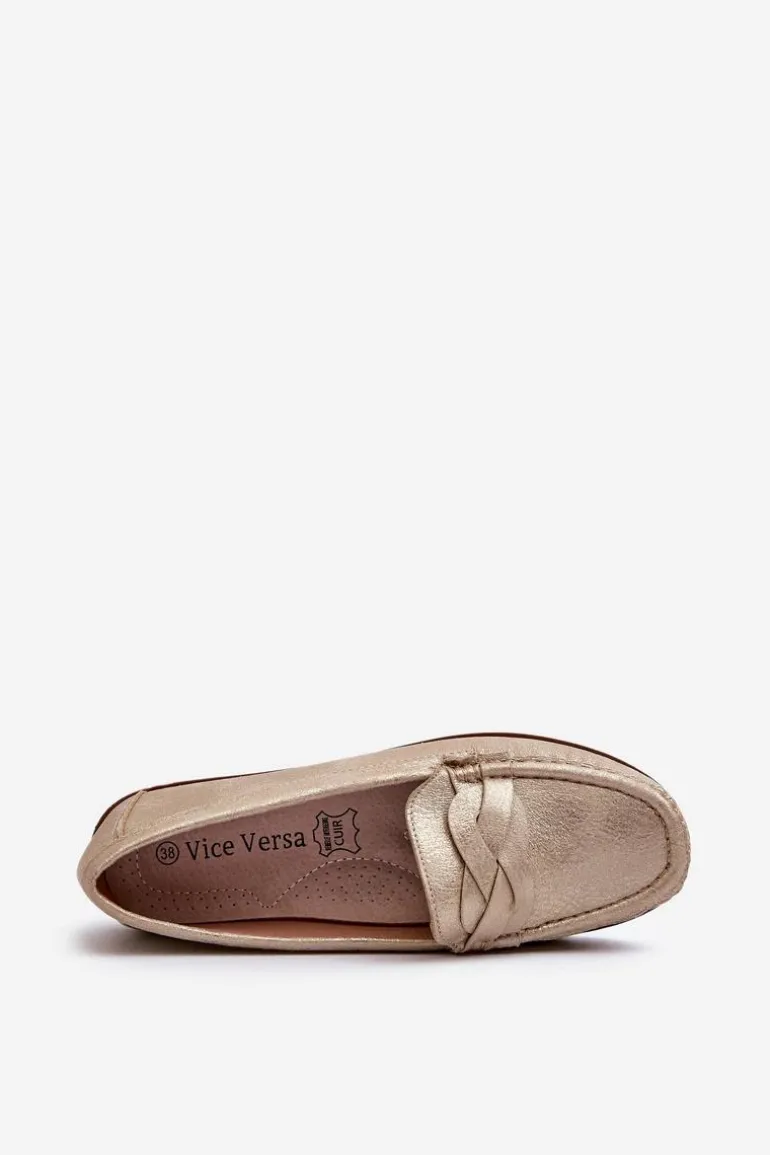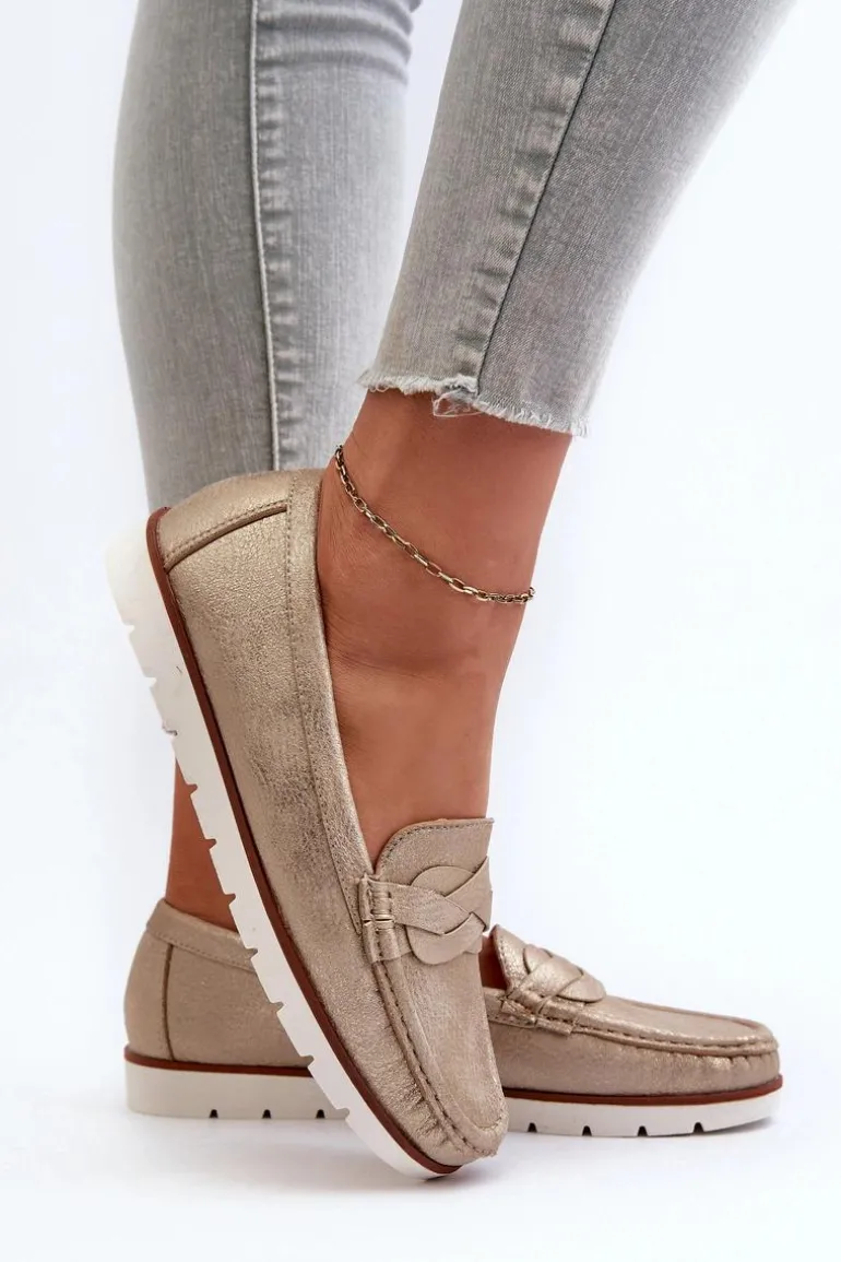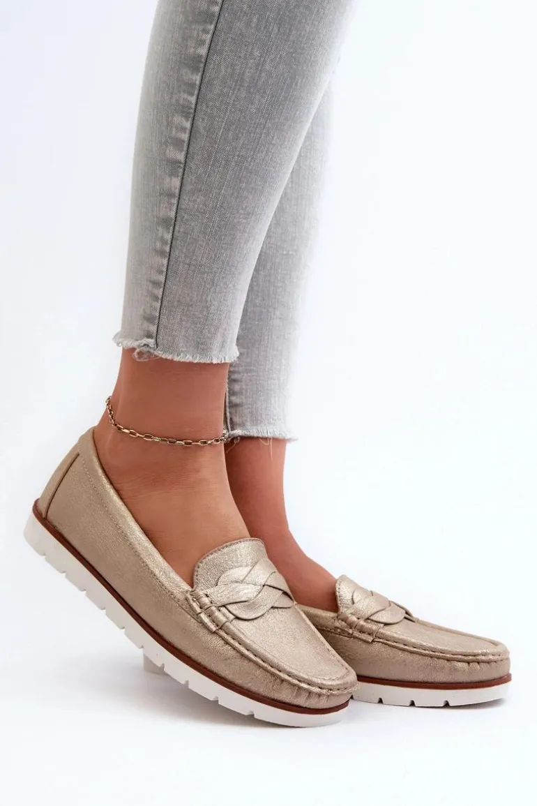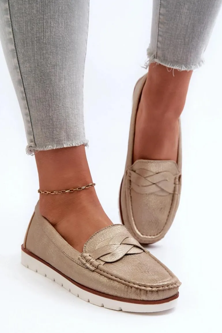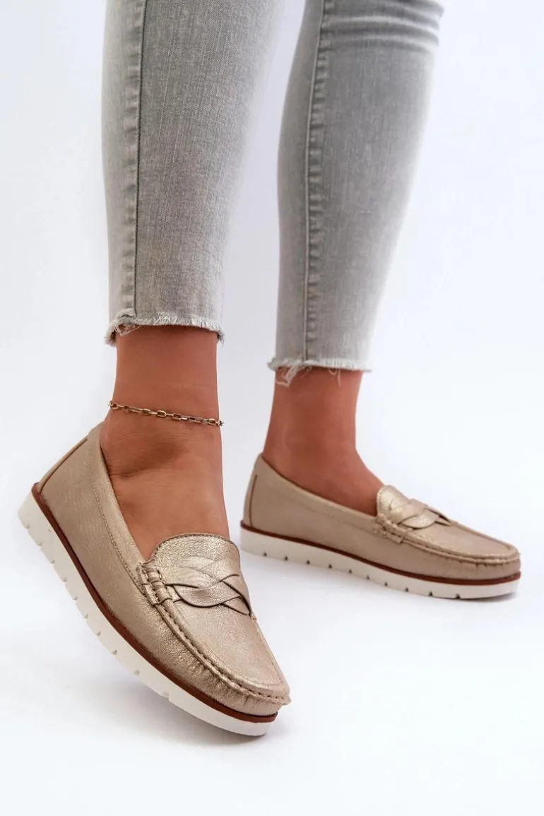 Mokasyny damskie wykonane z eko skóry. Przód ozdobiony przeplatającymi się paseczkami. Noski zaokrąglone. Miękka wkładka ze skóry naturalnej. Podeszwa z gumowego tworzywa. Model ten doskonale dopełni wiele casualowych stylizacji. Przy wyborze rozmiaru prosimy sugerować się tabelą rozmiarów.