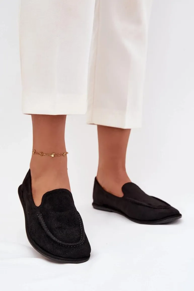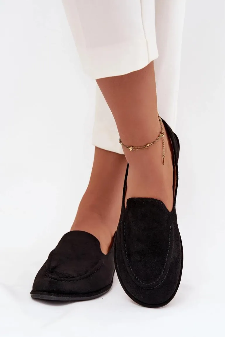 Mokasyny damskie wykonane z eko zamszu to klasyczna i wygodna propozycja na co dzień. Osadzone na płaskiej podeszwie gwarantują komfort noszenia, a zaokrąglone noski nadają im ponadczasowego charakteru. To uniwersalne obuwie, idealne na codzienne wyjścia, które świetnie sprawdzi się zarówno w casualowych, jak i nieco bardziej eleganckich stylizacjach. Przy wyborze rozmiaru prosimy sugerować się tabelą rozmiarów.