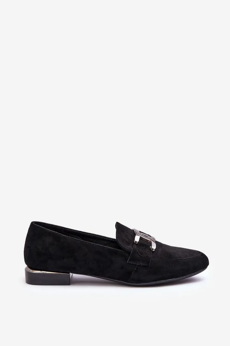 Mokasyny Damskie Z Ozdobą Czarne Camilena – Zamsz