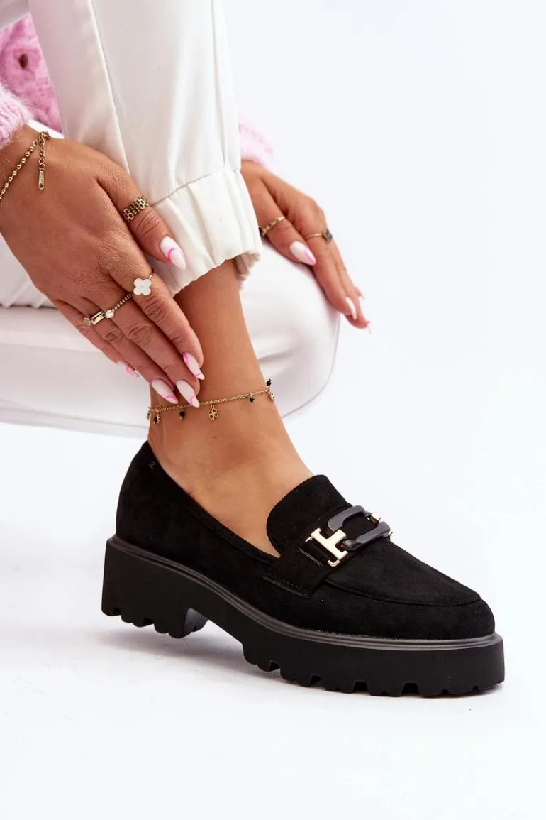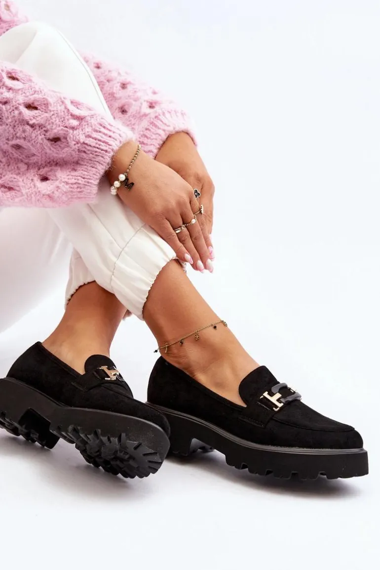 Mokasyny wykonane z miękkiego eko zamszu. Posiadają z przodu pasek z ozdobą. Wkładka ze skóry ekologicznej zadba o Twój komfort. Mokasyny osadzono na płaskim obcasie, dzięki któremu są niezwykle stabilne. Idealny model do wielu wiosenno-letnich stylizacji! Koniecznie powinnaś je mieć! Przy wyborze rozmiaru prosimy sugerować się tabelą rozmiarów.