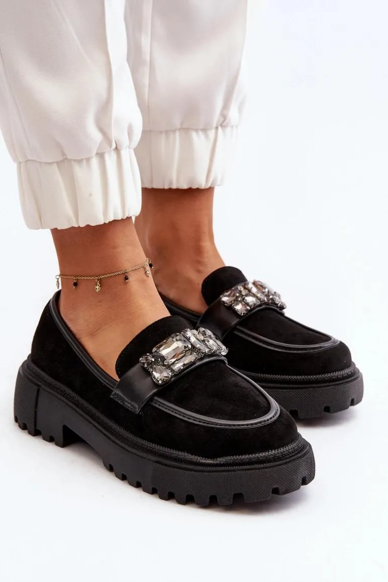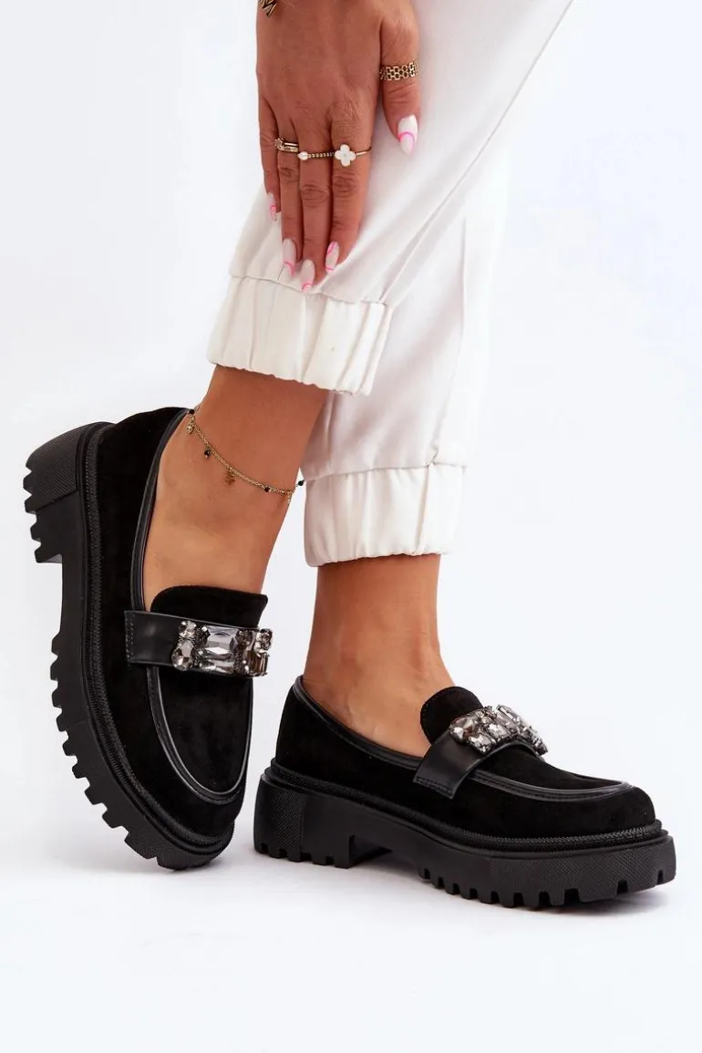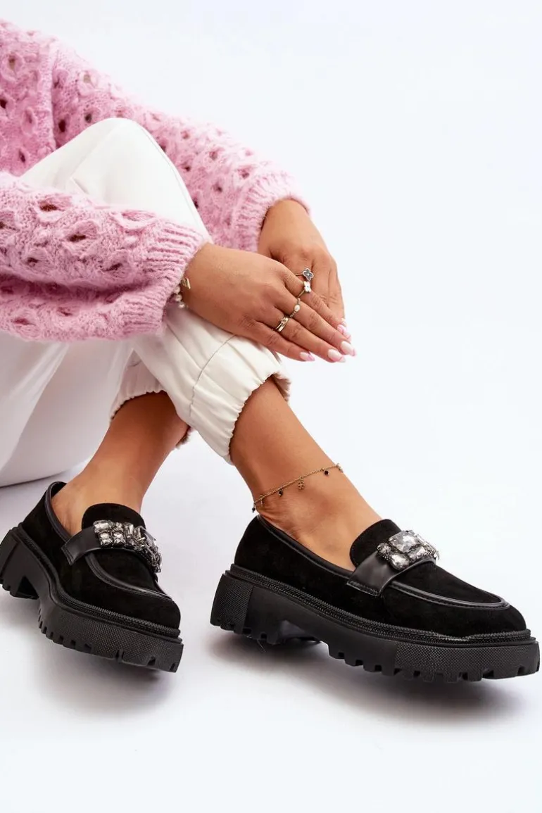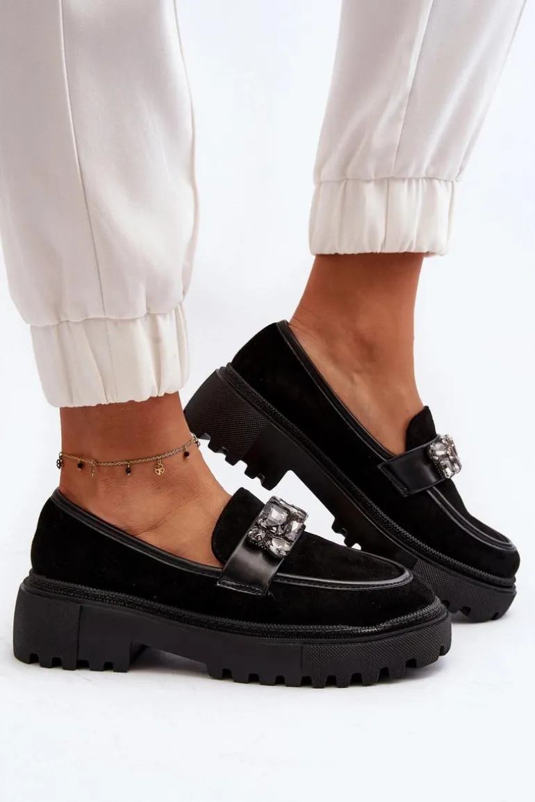 Mokasyny damskie wykonane z eko zamszu prezentują się wyjątkowo. Ozdoba oraz paseczek na przodzie dodają im subtelności i elegancji. Masywna platforma i płaski obcas sprawiają, że są niezwykle wygodne. To idealny model na wiosenno-jesienne dni, który doskonale uzupełni różnorodne stylizacje. Koniecznie dodaj te modne mokasyny do swojej kolekcji, aby podkreślić swój wyjątkowy styl! Przy wyborze rozmiaru prosimy sugerować się tabelą rozmiarów.