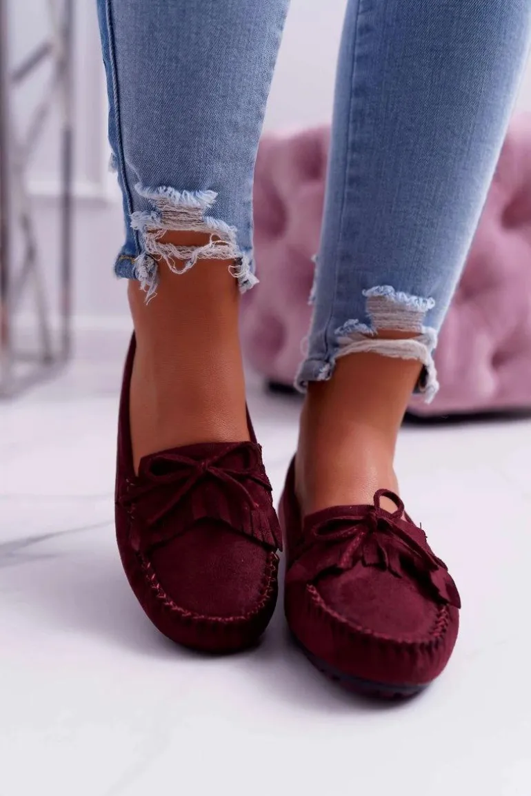 Mokasyny Damskie Zamszowe Bordowe Espanto