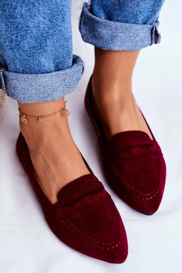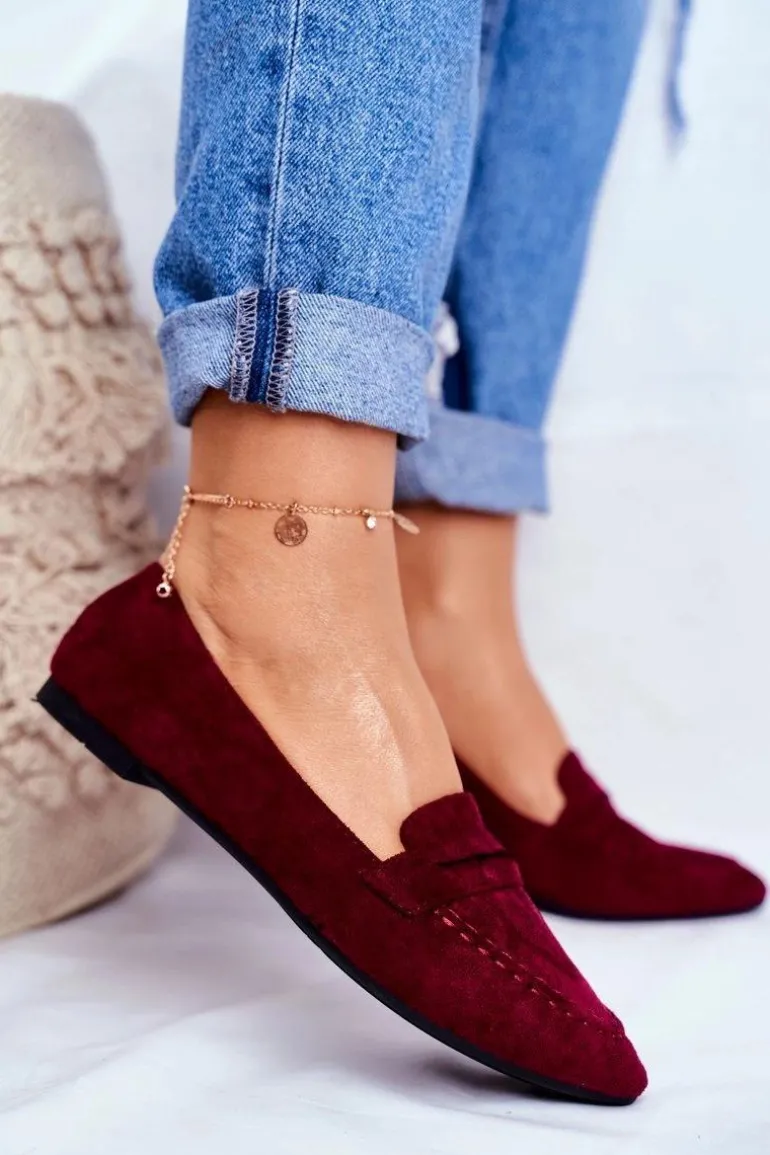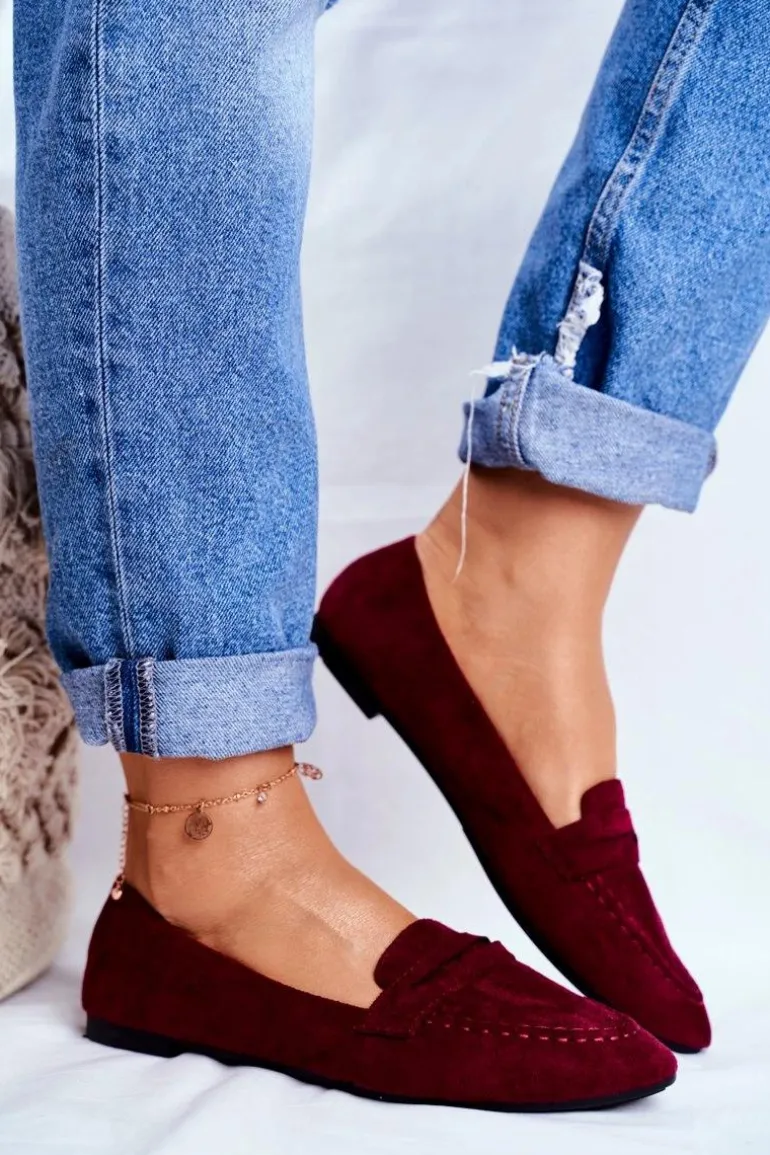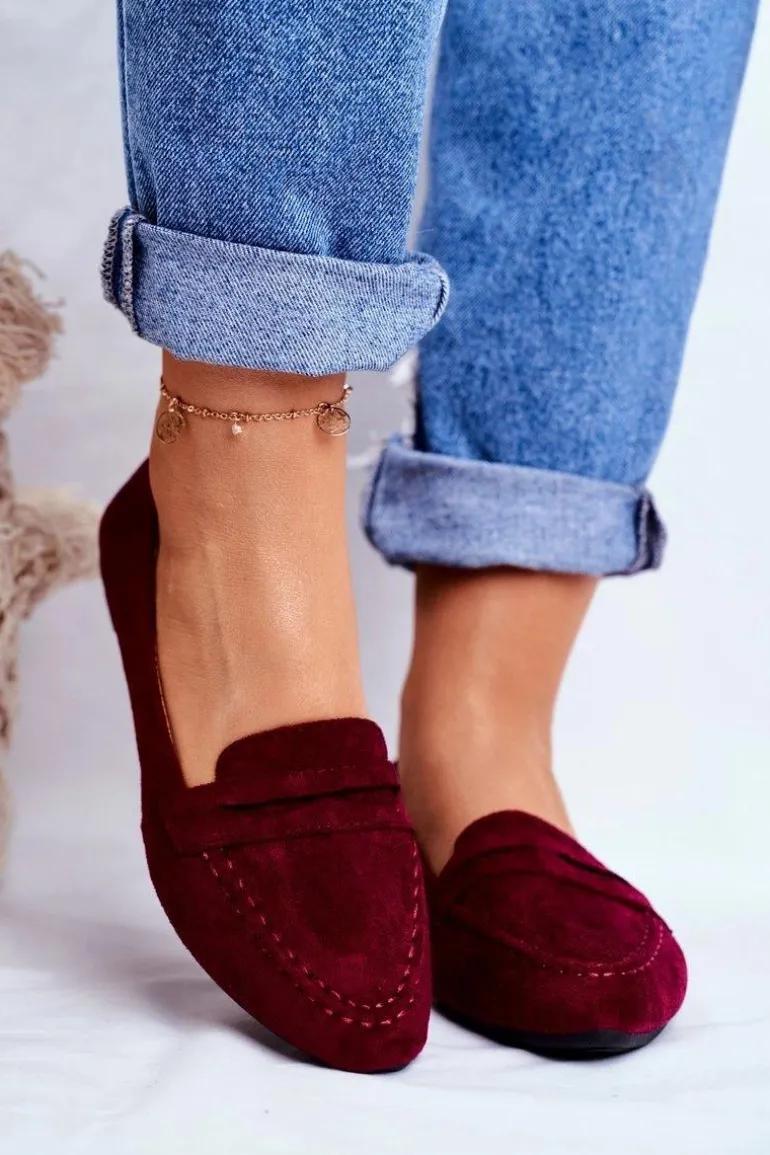 Mokasyny Damskie Zamszowe CH-1M6 Bordowe Laveria