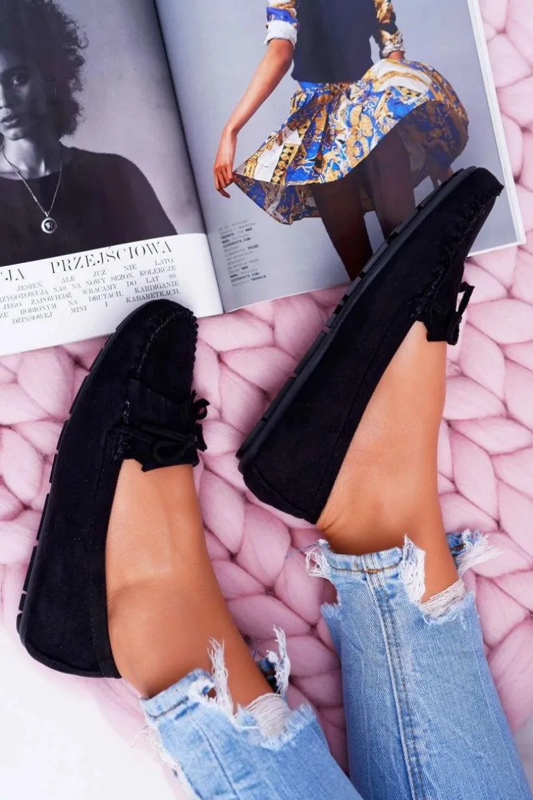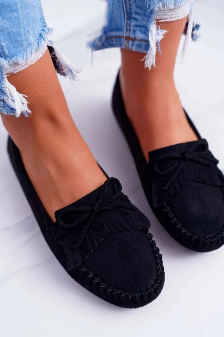 Mokasyny Damskie Zamszowe Czarne Espanto