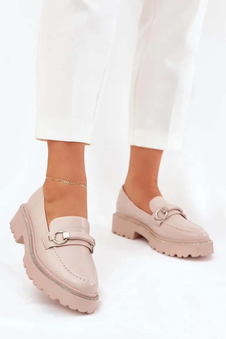 Stylowe mokasyny wykonane z eko skóry. Z przodu paseczek z ozdobą dodaje wyjątkowego charakteru, a zaokrąglone noski zapewniają komfort przez cały dzień. Przy podeszwie znajdują się zdobienia cyrkoniami, które nadają blasku. Idealne na co dzień, te mokasyny doskonale komponują się z różnymi stylizacjami. Przy wyborze rozmiaru prosimy sugerować się tabelą rozmiarów.