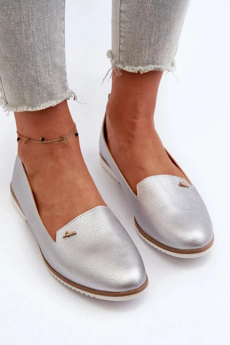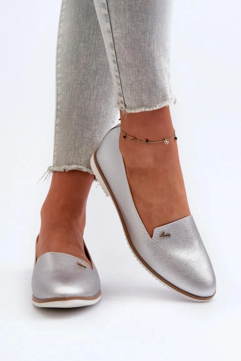 Mokasyny Na Płaskim Obcasie Damskie Srebrne Enzla