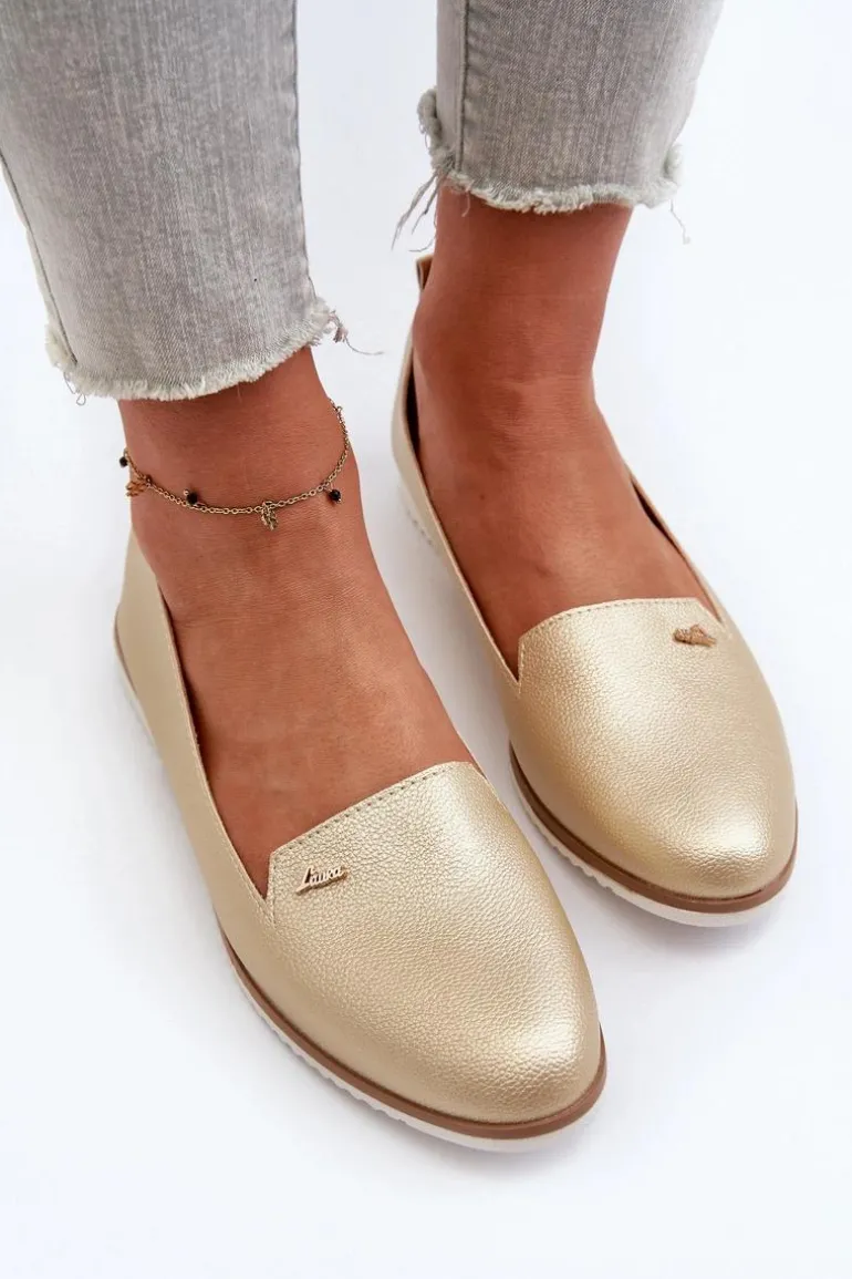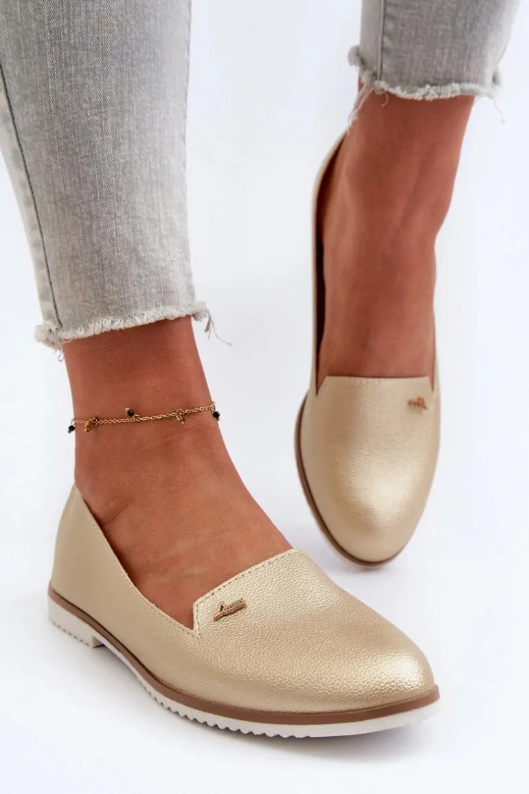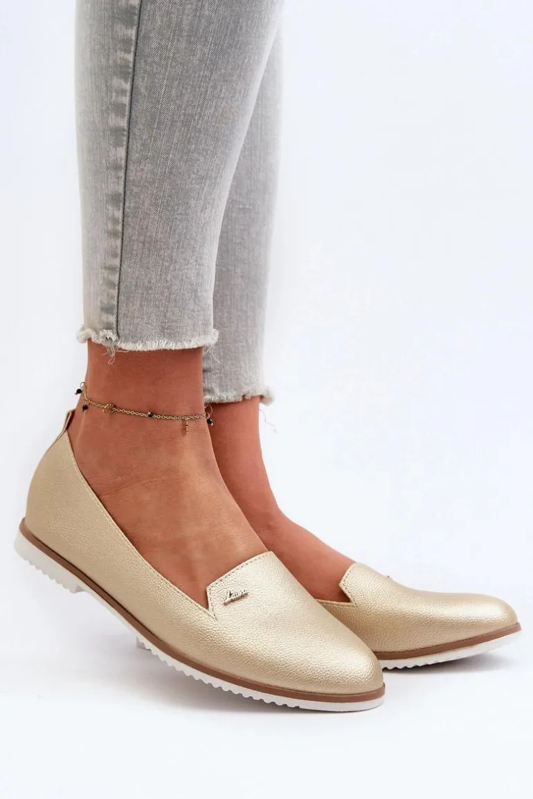 Mokasyny Na Płaskim Obcasie Damskie Złote Enzla