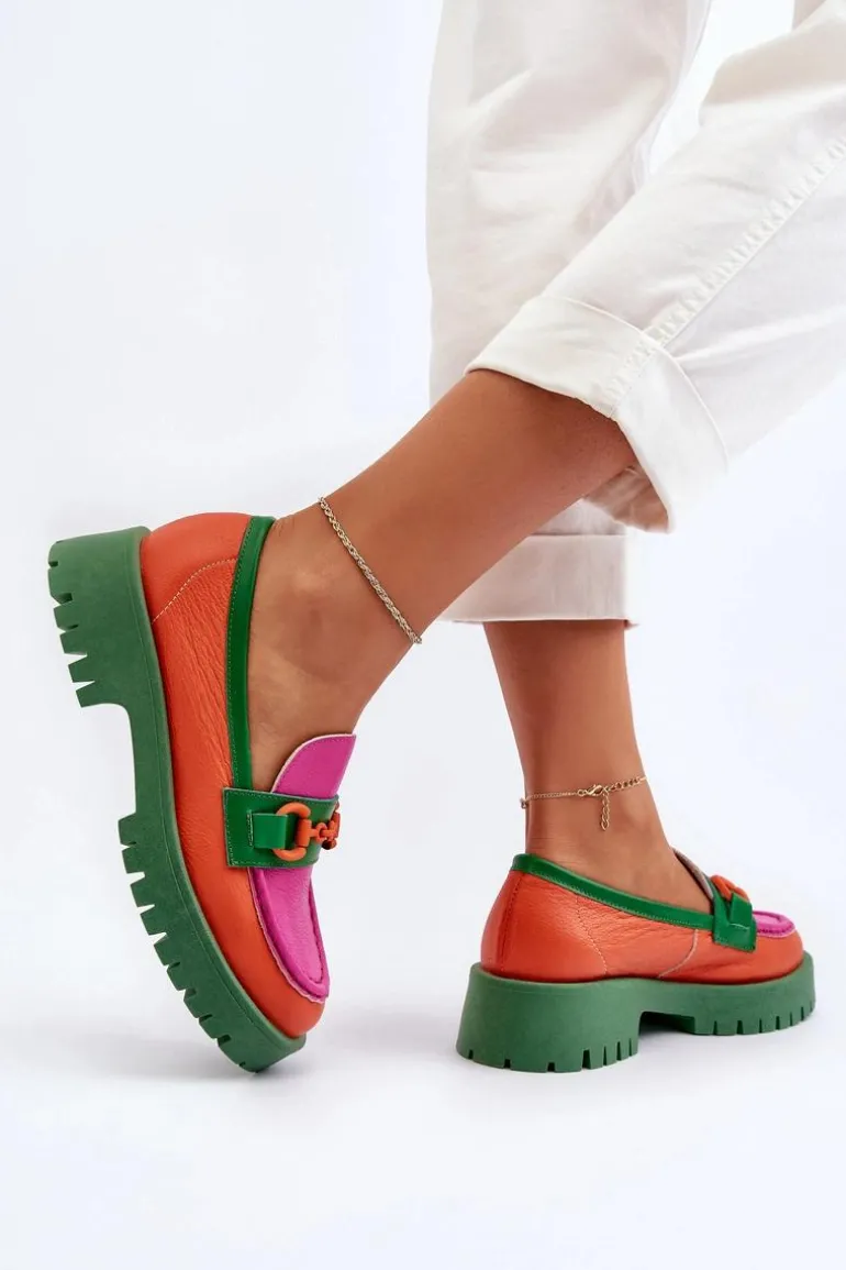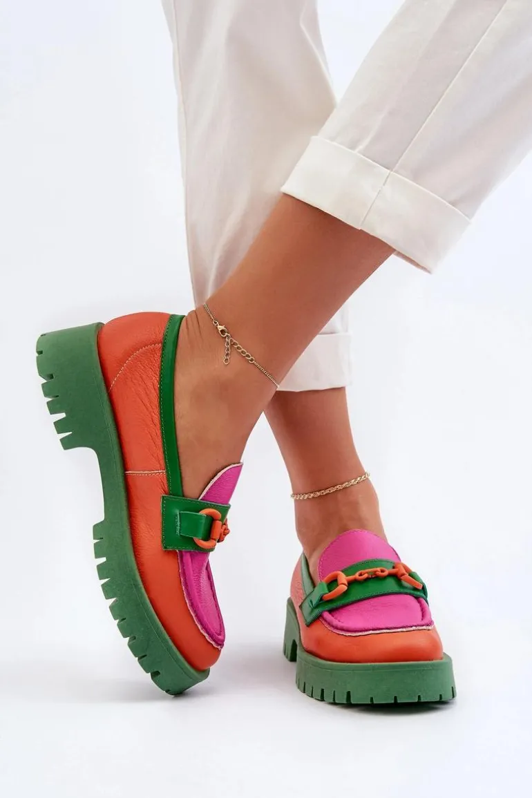 Te stylowe mokasyny damskie to połączenie elegancji i wygody. Ich płaski obcas sprawia, że są doskonałe na codzienne noszenie. Ozdoba umieszczona z przodu dodaje im wyjątkowego charakteru, podkreślając oryginalny design. Wykonane ze skóry naturalnej, te mokasyny są nie tylko stylowe, ale także trwałe i komfortowe. Idealne na wiele różnych okazji, będą doskonałym uzupełnieniem Twojej garderoby. Przy wyborze rozmiaru prosimy sugerować się tabelą rozmiarów.