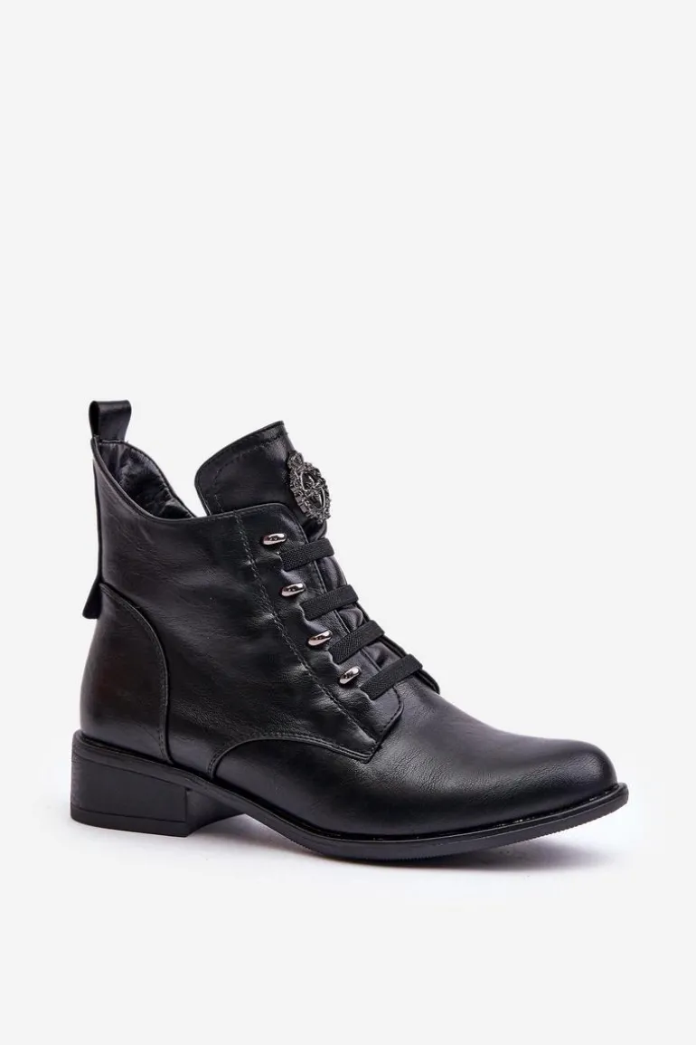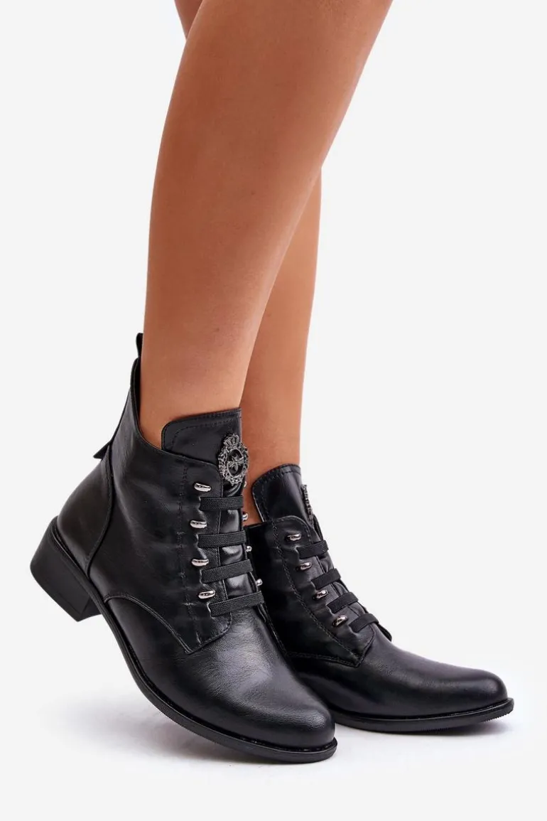 Niskie Botki Ocieplane Na Zamek Z Ozdobą Czarne Nevalia