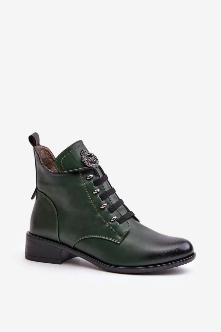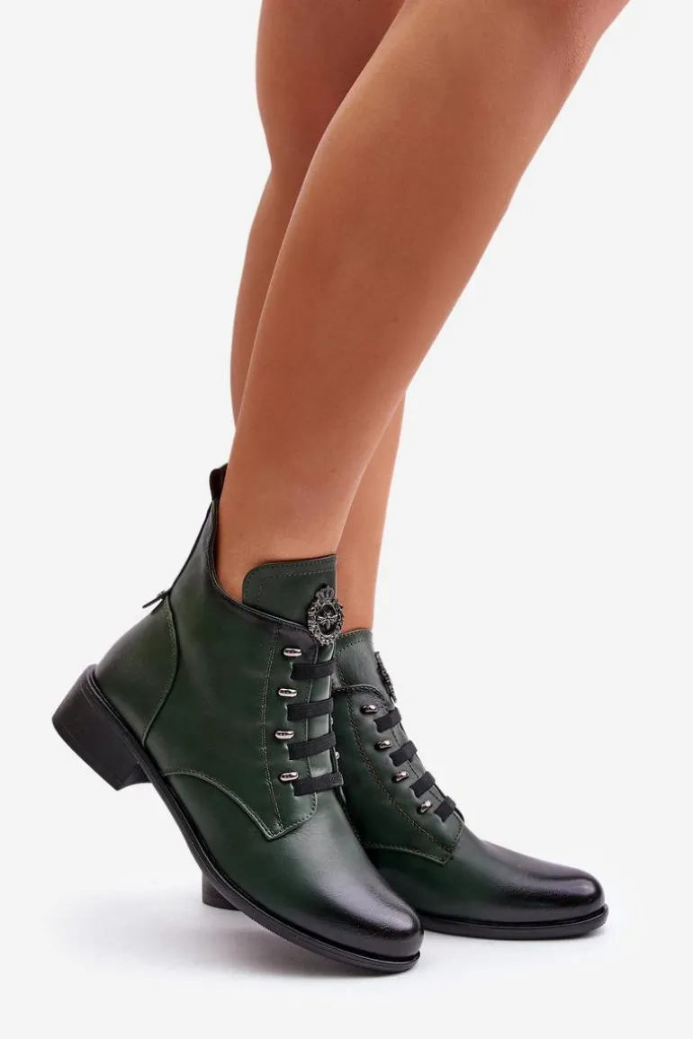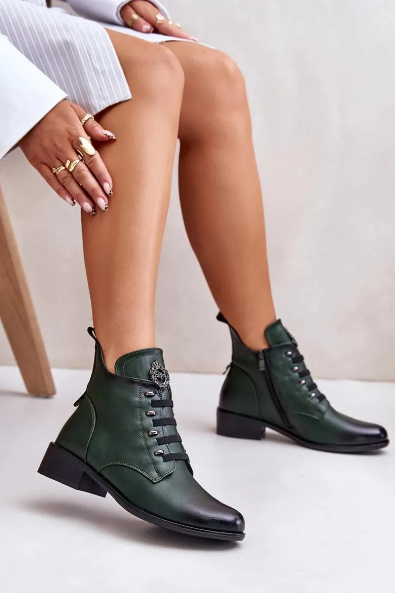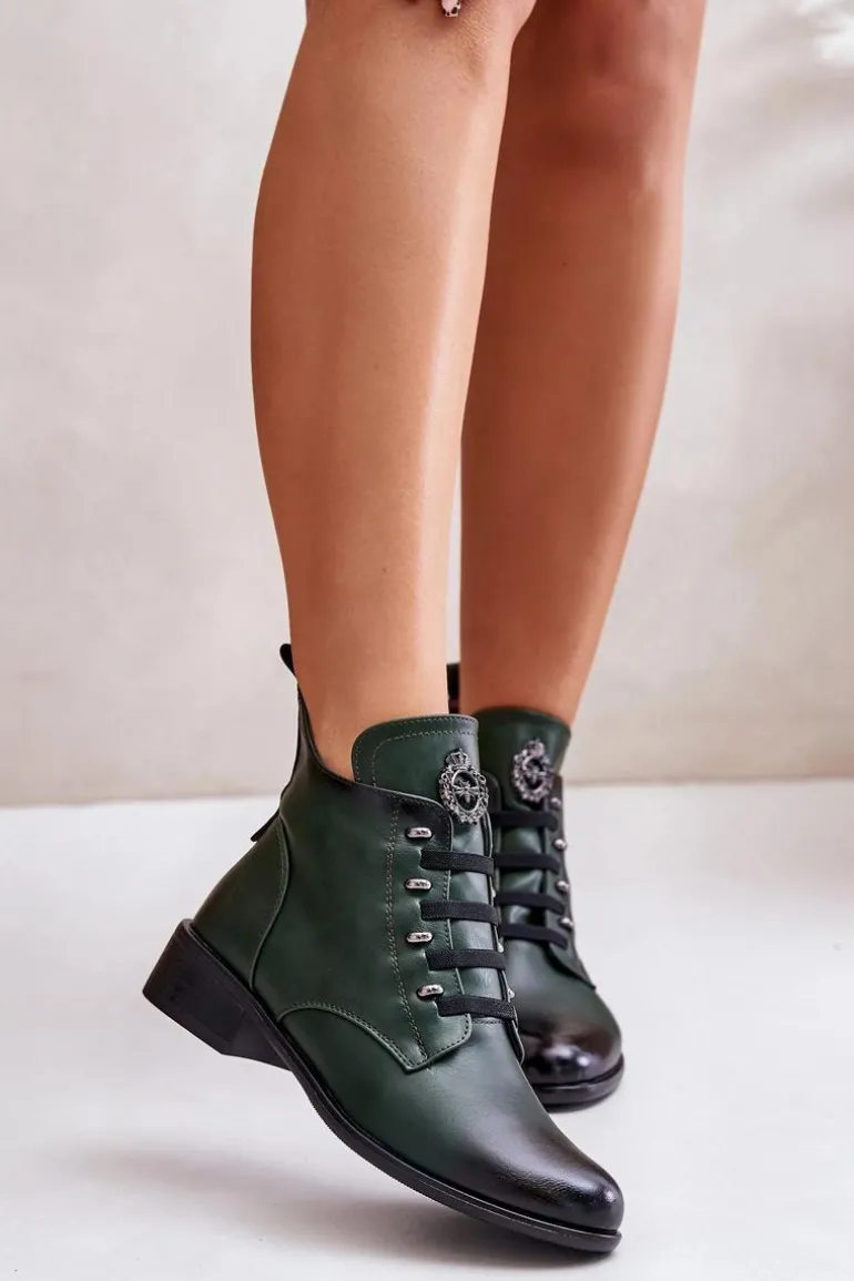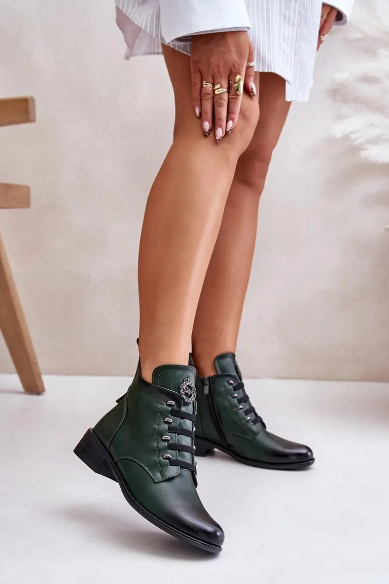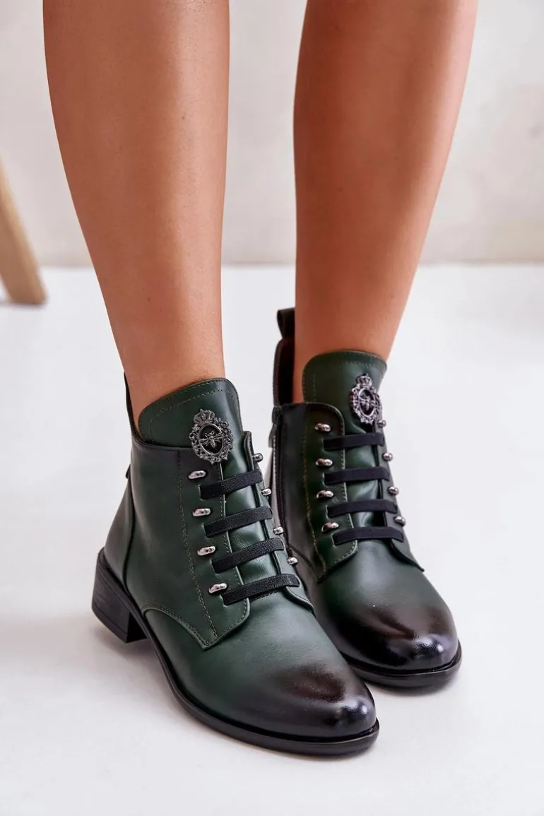 Niskie Botki Ocieplane Na Zamek Z Ozdobą Zielone Nevalia