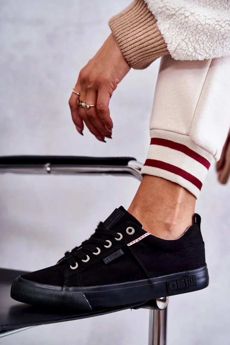 Klasyczne damskie tenisówki posiadają niską cholewkę do kostki. Zostały wykonane z materiału tekstylnego. Wyściółka w ciekawy wzór. Model sznurowany. Platforma wraz z podeszwą zostały wykonane z gumowego tworzywa, co sprawia, że te trampki są antypoślizgowe. Dodatkowo buty posiadają bootstrapa, czyli pętelkę ułatwiającą zakładanie i ściąganie obuwia. Przy wyborze rozmiaru prosimy sugerować się tabelą rozmiarów.