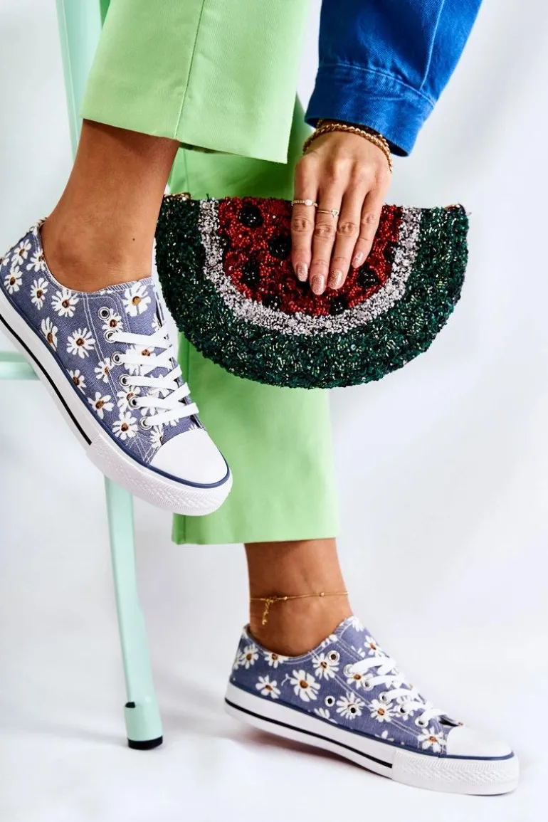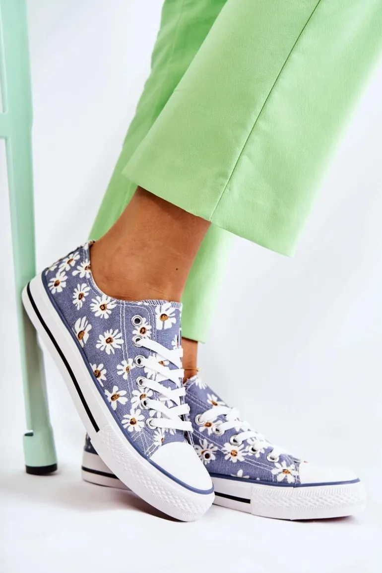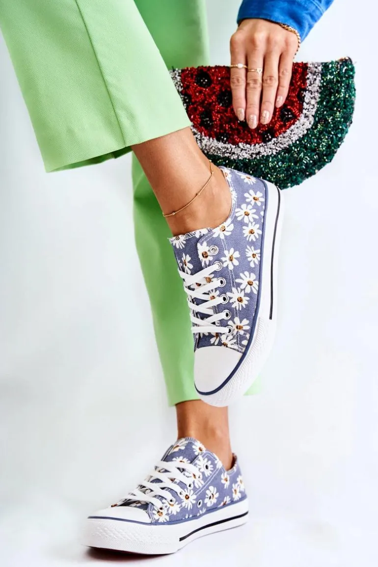 Niskie Damskie Trampki W Kwiaty Niebieskie Janey