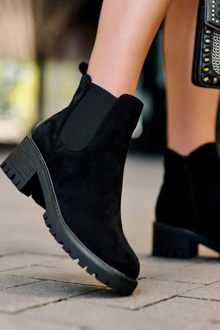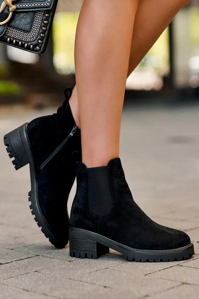 Niskie Klasyczne Zamszowe Botki Sztyblety Czarne Lalyllis