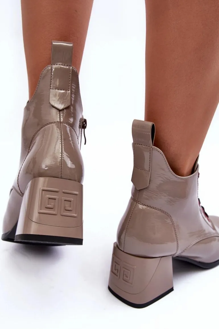 Niskie Lakierowane Botki Sznurowane S.Barski MR870-66 Ciemnobeżowe