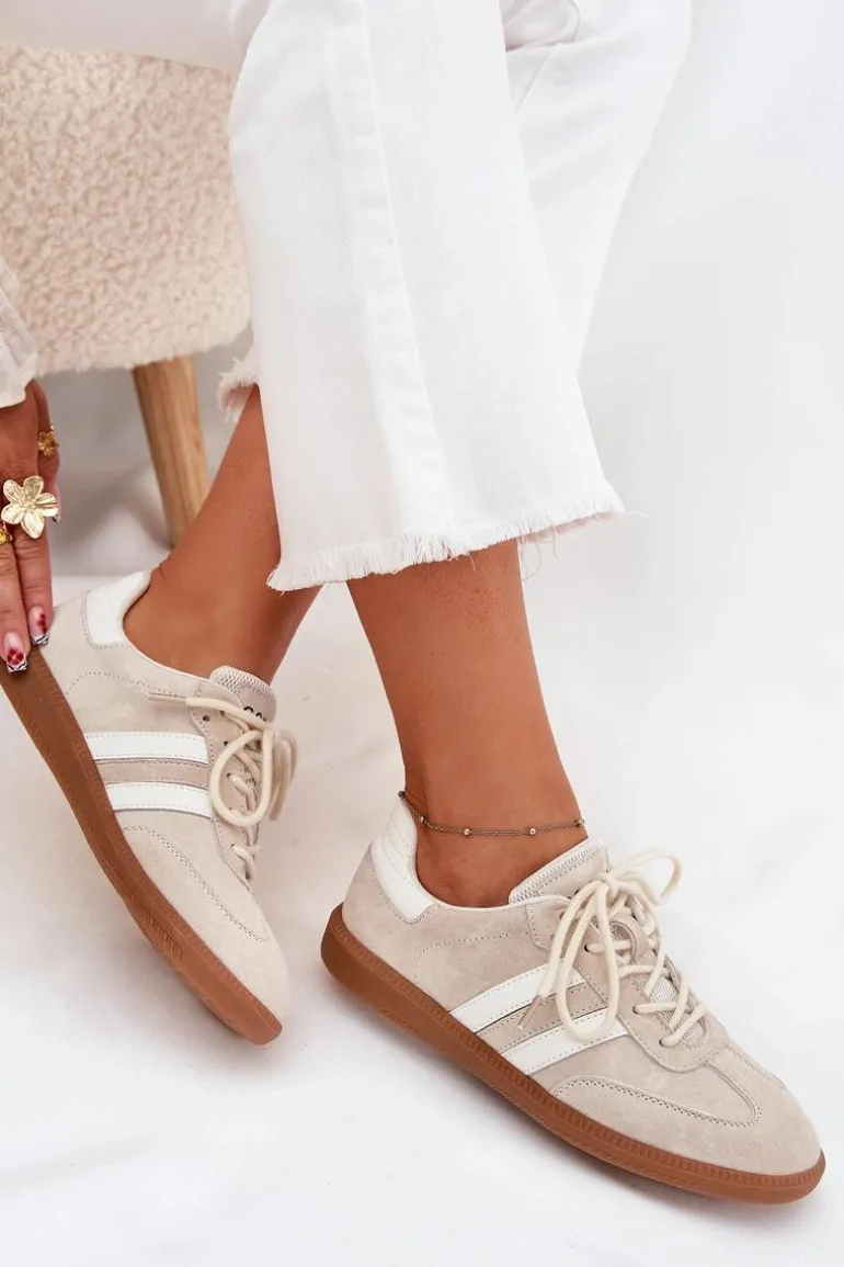 Sneakersy damskie wykonane z połączenia naturalnej skóry i zamszu, z niską cholewką, to idealna propozycja dla osób ceniących wygodę i modny wygląd. Skórzana wkładka zapewnia komfort przez cały dzień, a stylowy design sprawia, że buty pasują zarówno do spodni, spódnic, jak i sukienek. Z pewnością staną się Twoim ulubionym elementem codziennych stylizacji. Przy wyborze rozmiaru prosimy kierować się tabelą rozmiarów.