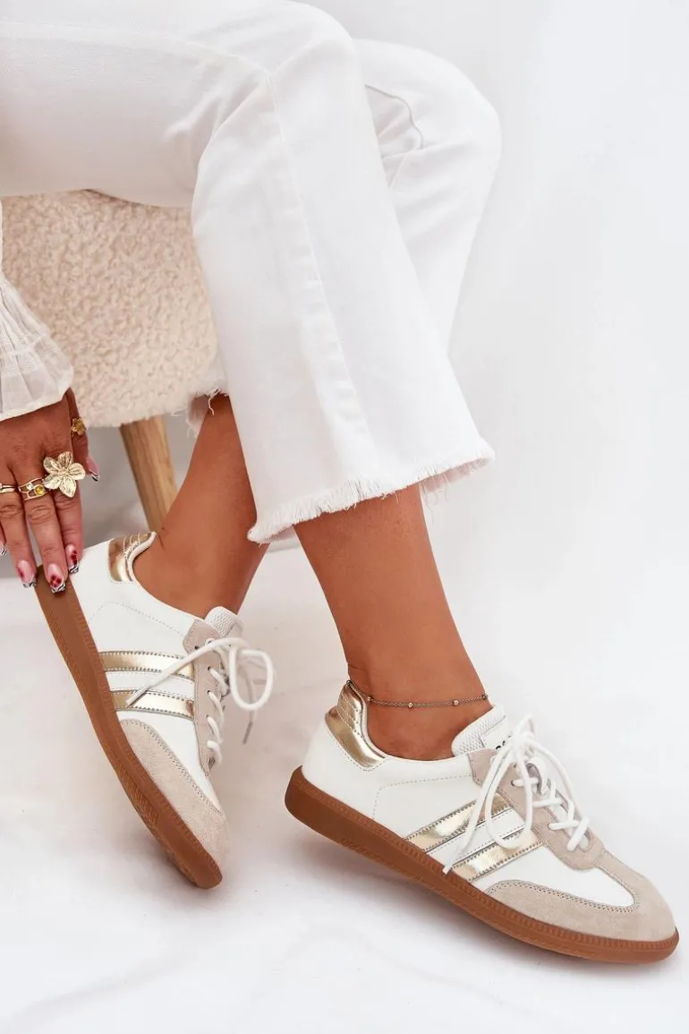 Sneakersy damskie wykonane z połączenia naturalnej skóry i zamszu, z niską cholewką, to idealna propozycja dla osób ceniących wygodę i modny wygląd. Skórzana wkładka zapewnia komfort przez cały dzień, a stylowy design sprawia, że buty pasują zarówno do spodni, spódnic, jak i sukienek. Z pewnością staną się Twoim ulubionym elementem codziennych stylizacji. Przy wyborze rozmiaru prosimy kierować się tabelą rozmiarów.