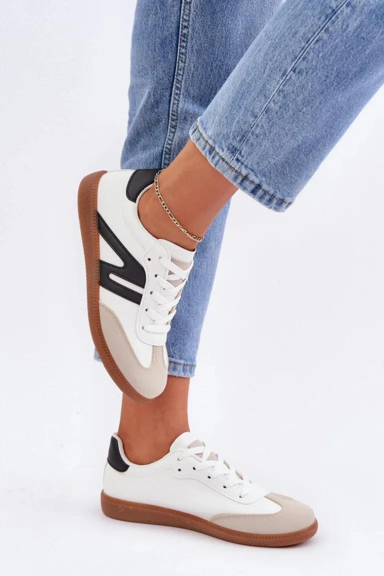 Sneakersy damskie z niską cholewką wykonane z eko skóry oferują wygodę i styl na co dzień. Klasyczne sznurowanie umożliwia idealne dopasowanie, a zaokrąglone noski dodają uniwersalnego wyglądu. Wkładka z miękkiej pianki zapewnia komfort przez cały dzień. Doskonałe do casualowych zestawień! Przy wyborze rozmiaru prosimy kierować tabelą rozmiarów.