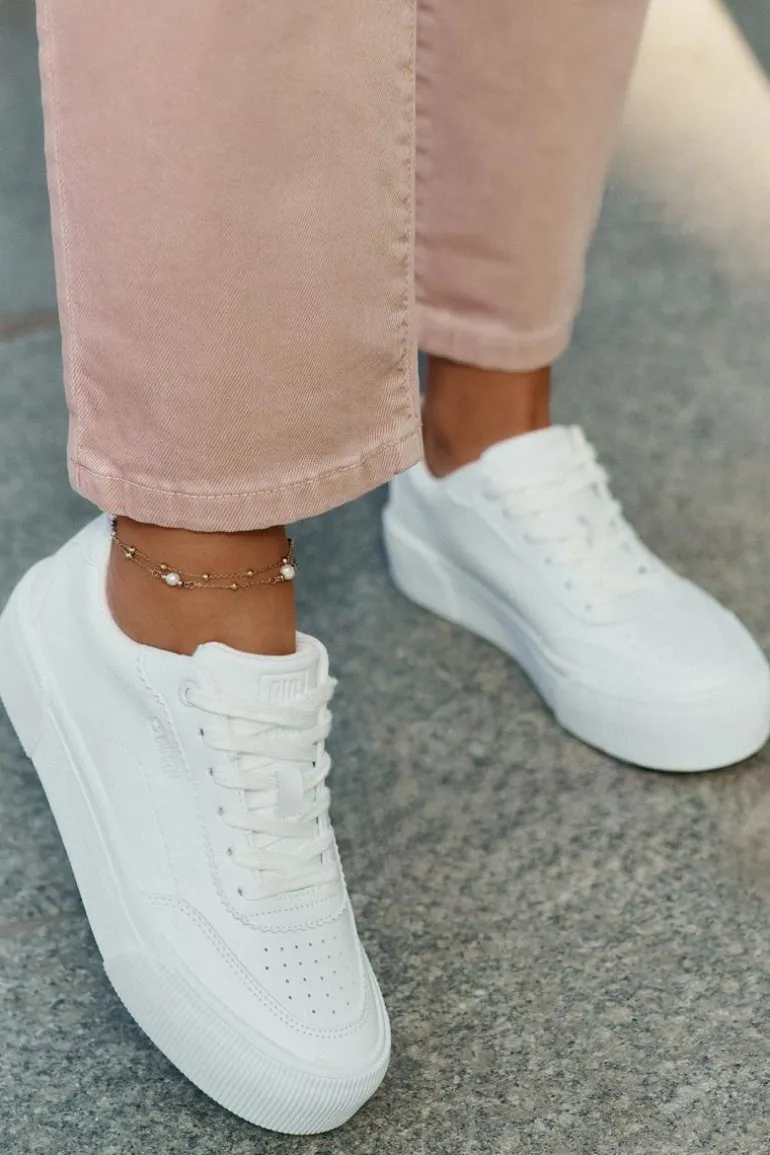 Damskie sneakersy od marki Big Star, wykonane z wysokiej jakości eko skóry, to doskonałe połączenie stylu i komfortu. Osadzone na platformie, zapewniają stabilność i lekkość podczas chodzenia. Zaokrąglone noski gwarantują wygodę przez cały dzień, a miękka wkładka dba o odpowiednią amortyzację, sprawiając, że sneakersy są idealnym wyborem do codziennych stylizacji. Te buty łączą nowoczesny design z funkcjonalnością, będąc świetnym uzupełnieniem garderoby. Przy wyborze rozmiaru prosimy sugerować się tabelą rozmiarów.
