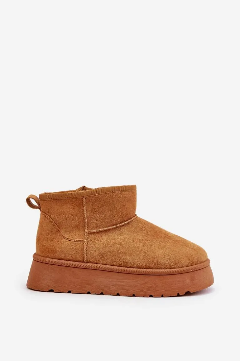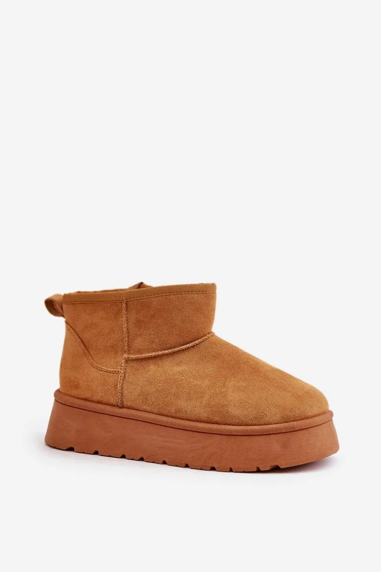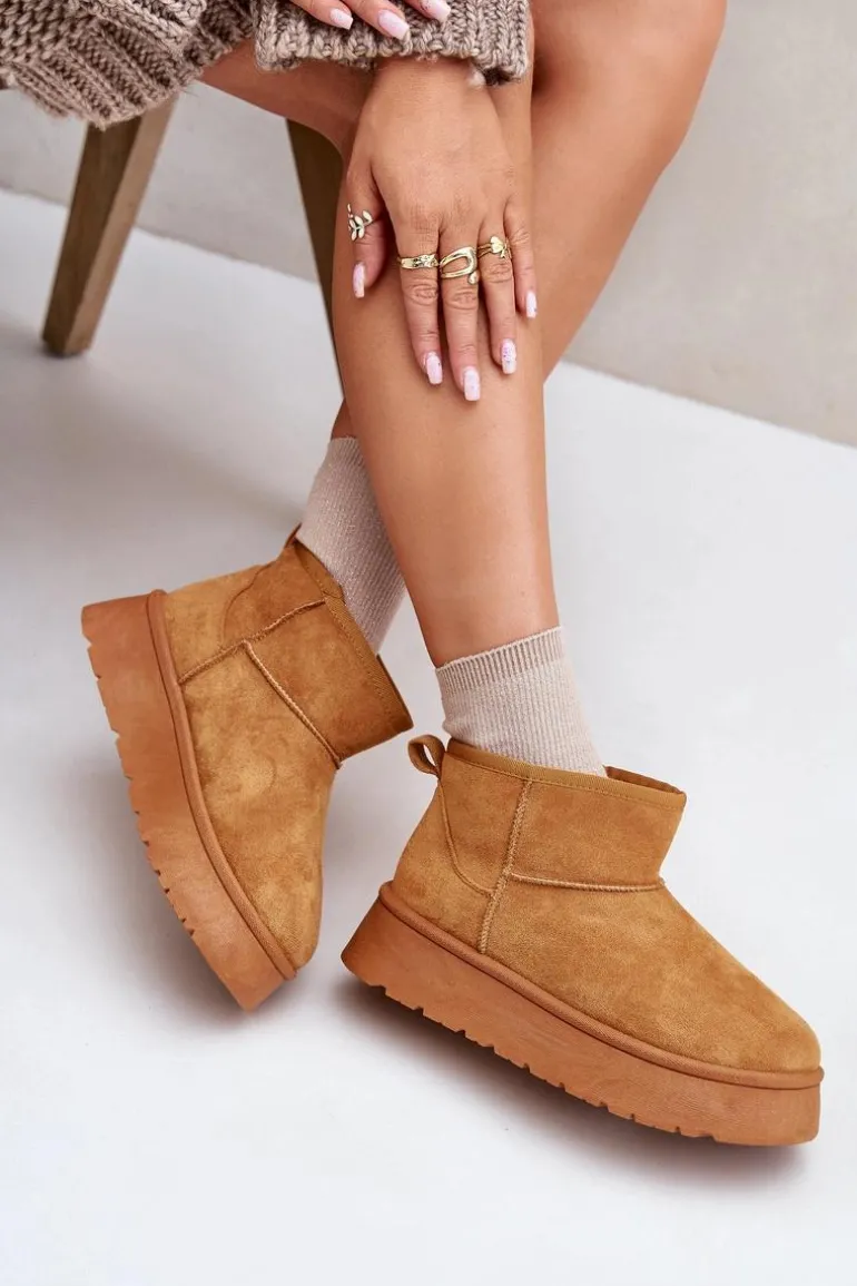 Śniegowce damskie wykonane z eko zamszu. Osadzone na platformie, która świetnie odizoluje od zimnego podłoża. Grube futerko w środku zapewni ciepło nawet w najmroźniejsze dni. Niezwykle modny fason tego obuwia pozwala zestawić je z różnorodnymi stylizacjami, dodając charakteru każdemu zimowemu outfitowi! Przy wyborze rozmiaru prosimy sugerować się tabelą rozmiarów.