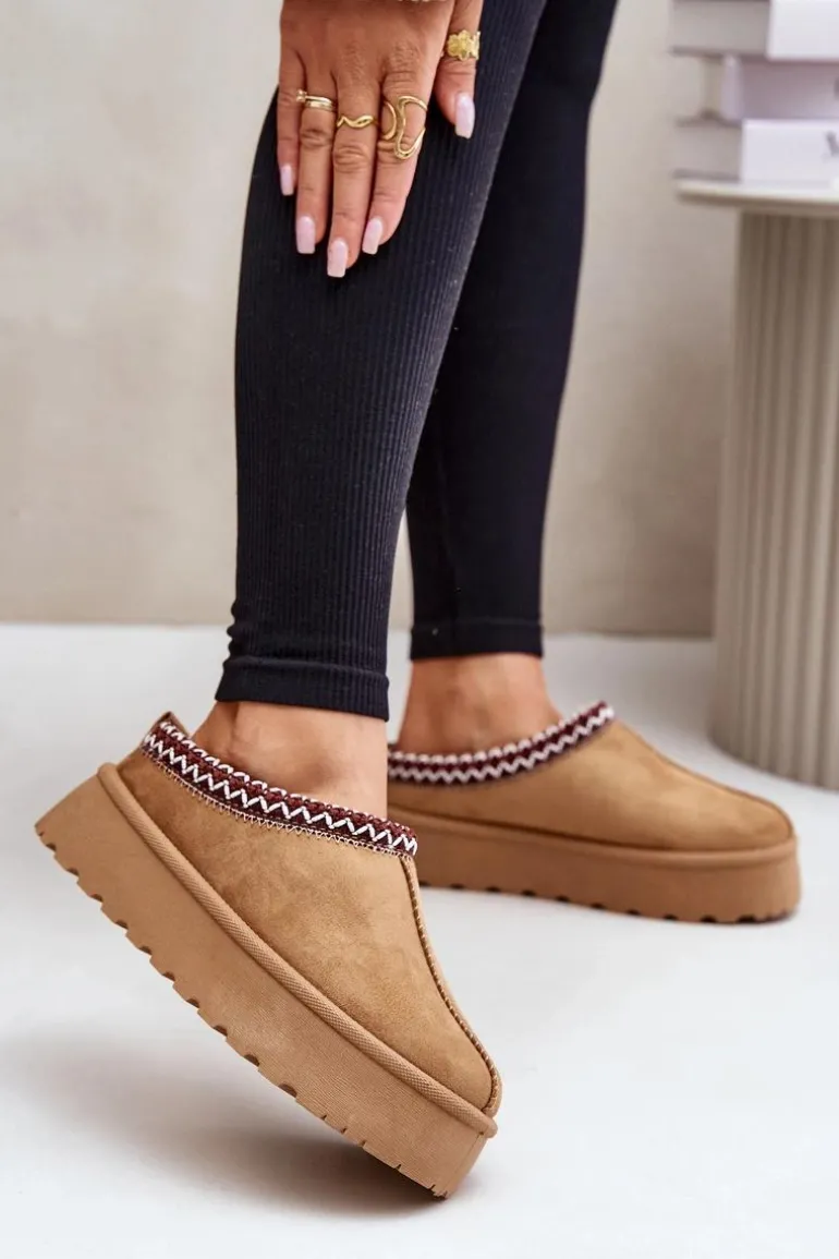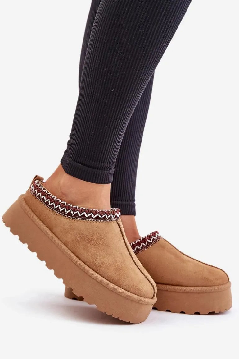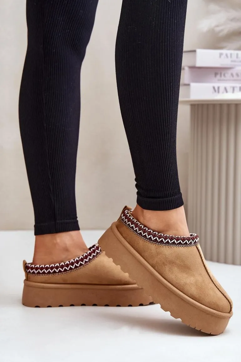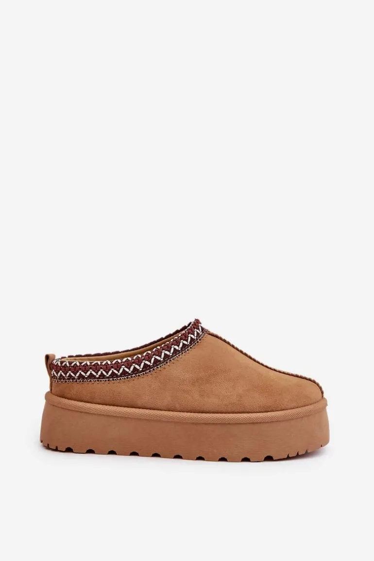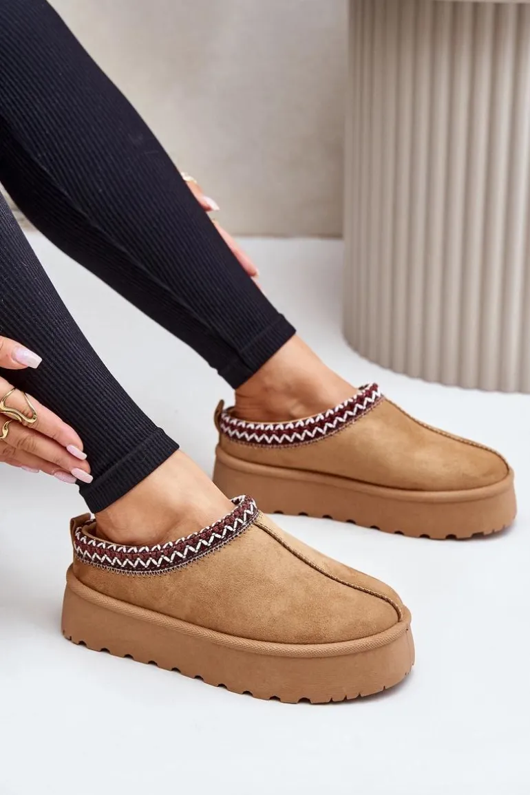 Niskie Śniegowce Damskie Z Haftem Na Platformie Camel Narirya