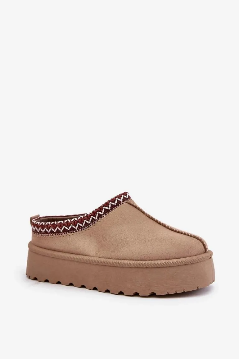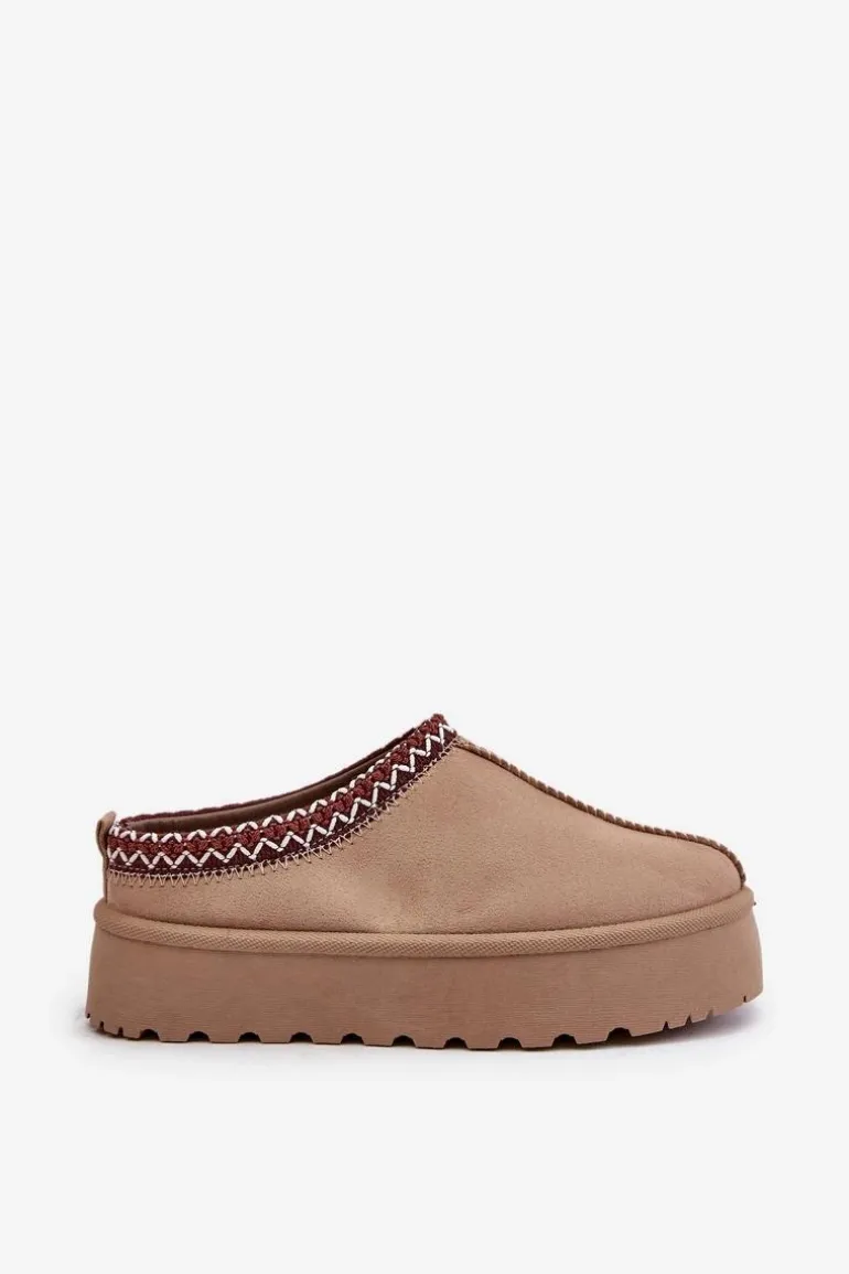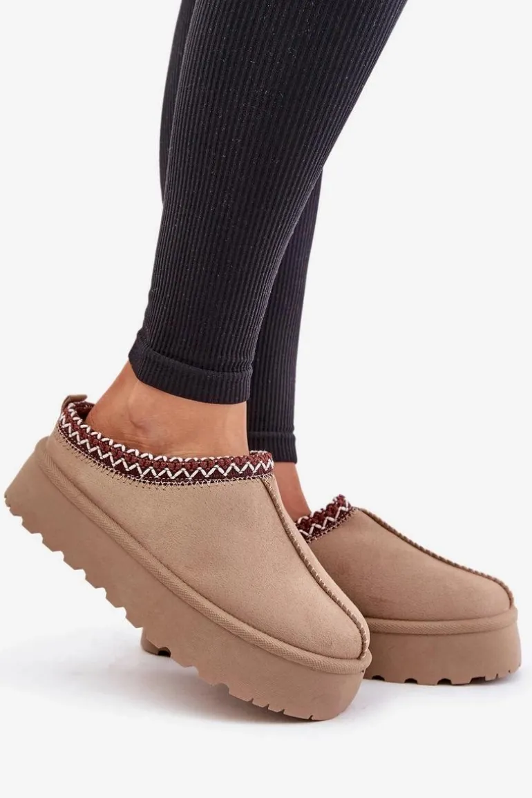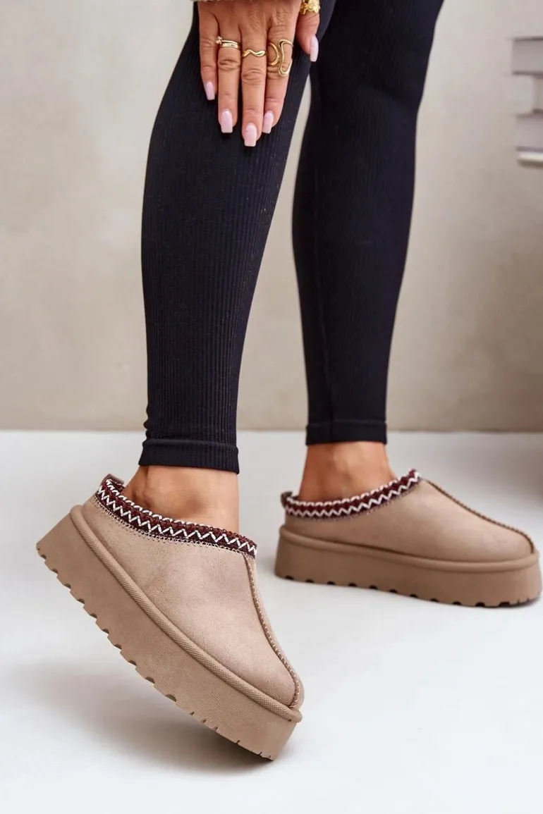 Damskie śniegowce ozdobione dekoracyjną lamówką. Wykonane z ekologicznego zamszu, są doskonałym wyborem na chłodniejsze dni. Osadzone na platformie, oferują nie tylko stylowy wygląd, ale także komfort oraz ochronę przed zimnem. Wnętrze butów ocieplane jest miękkim futerkiem, co zapewnia ciepło i wygodę podczas użytkowania. Te śniegowce stanowią idealne połączenie funkcjonalności i eleganckiego wyglądu, idealne na zimowe spacery. Przy wyborze rozmiaru prosimy kierować tabelą rozmiarów.