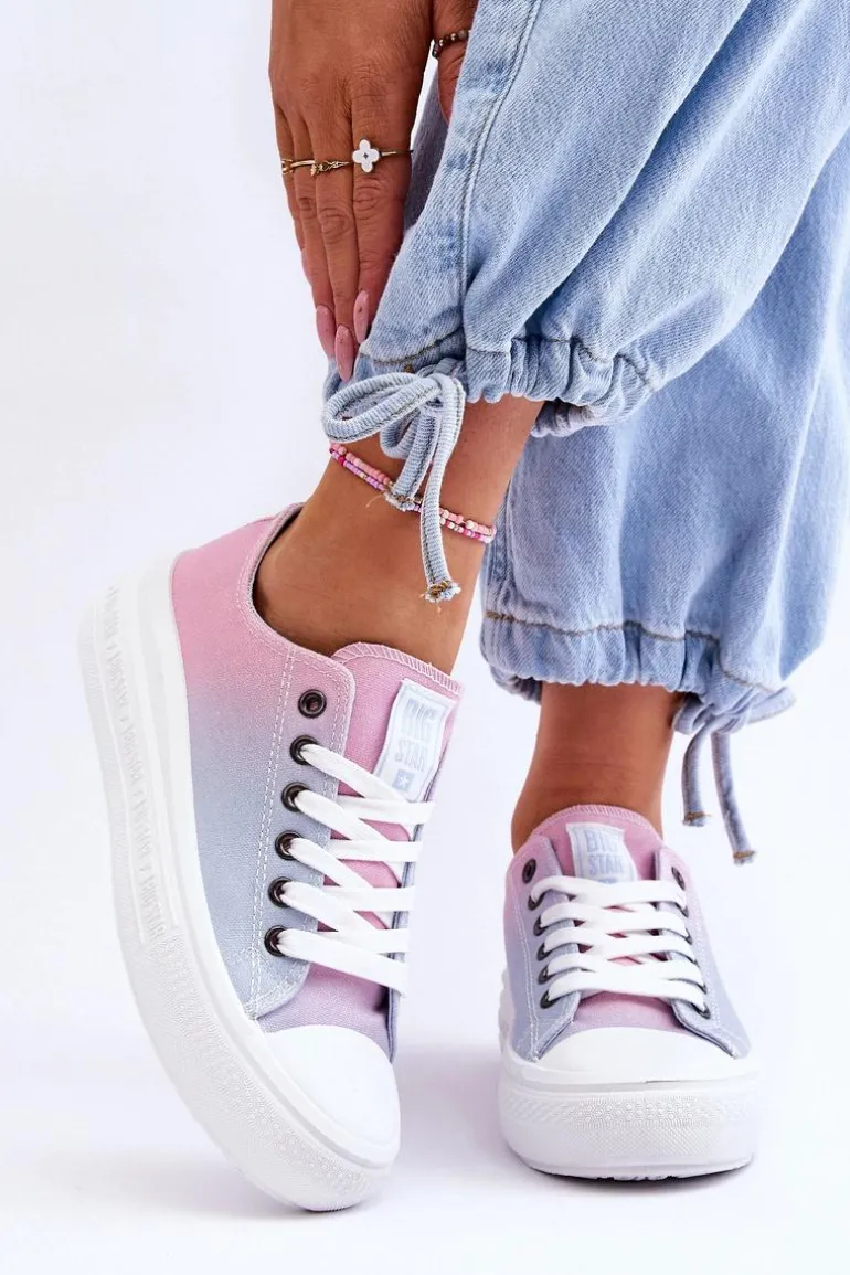 Damskie trampki polskiej marki BIG STAR zostały wykonane z materiału tekstylnego. Posiadają materiałową wkładkę oraz klasyczne sznurowanie. Osadzone na masywnej platformie. Trampki pasują do wielu stylizacji, dlatego koniecznie powinnaś mieć ten model w swojej garderobie! Z pewnością wykorzystasz je w sezonie wiosenno-letnim! Przy wyborze rozmiaru prosimy sugerować się tabelą rozmiarów.