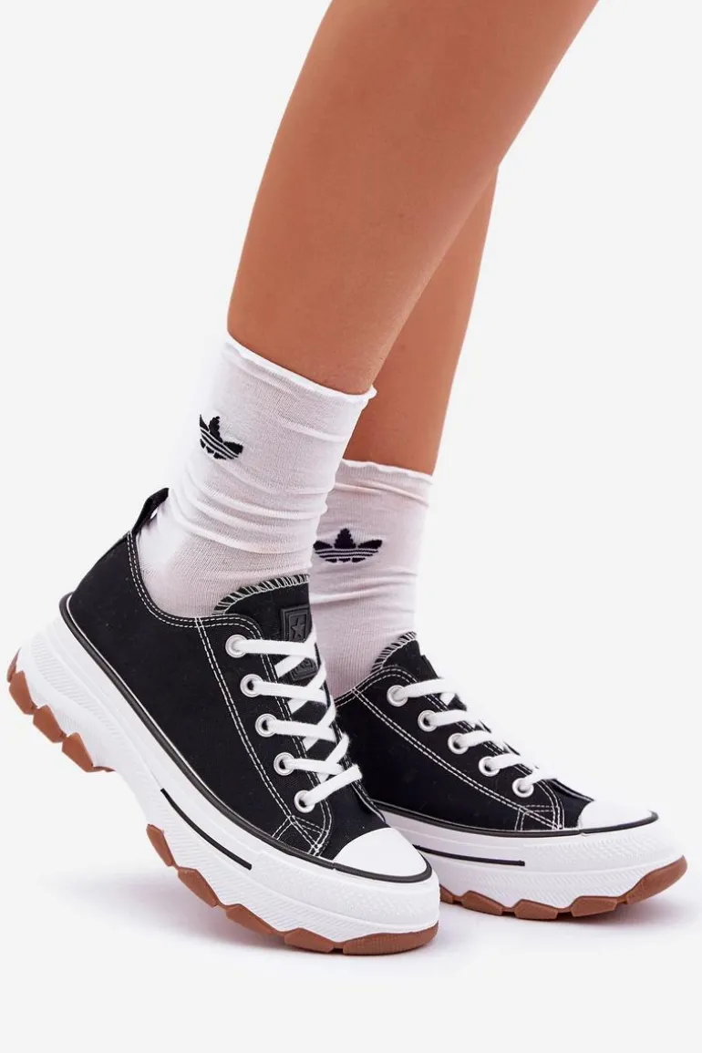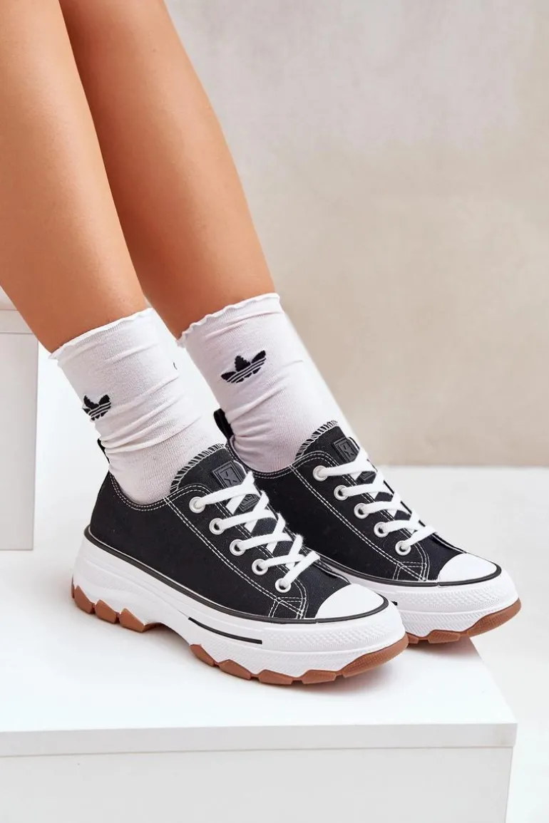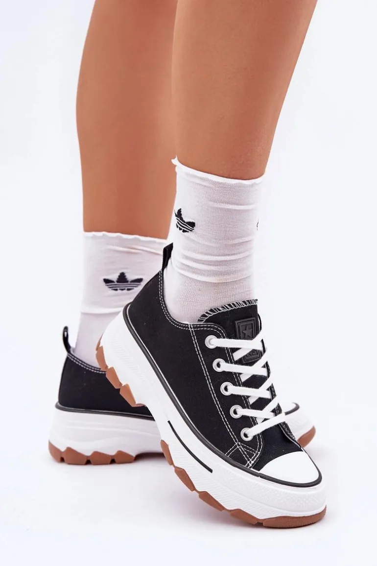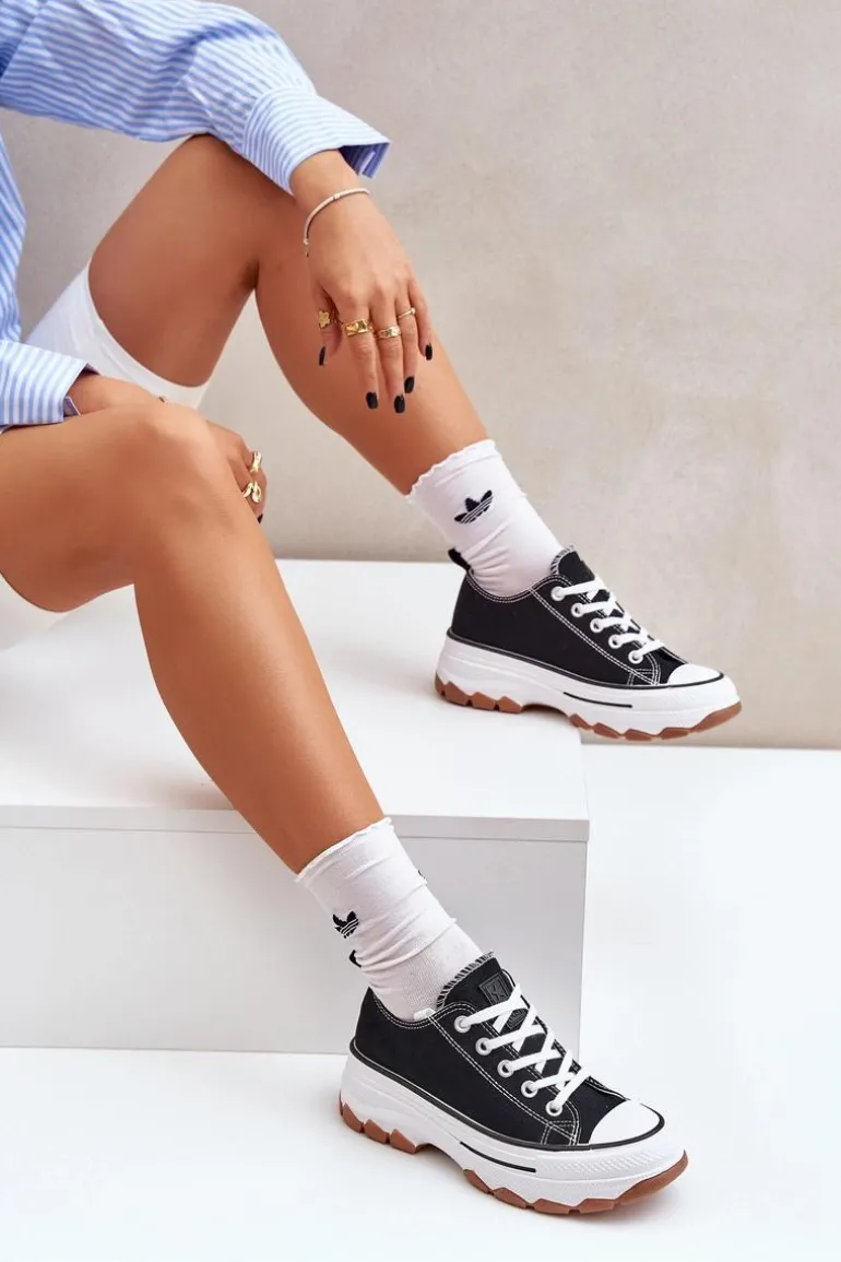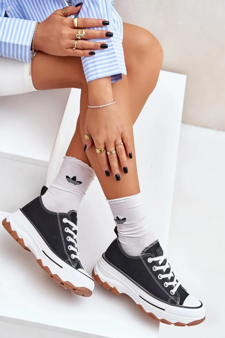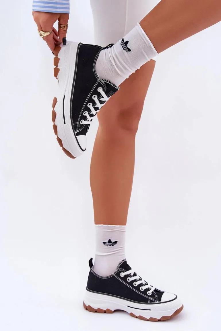 Niskie Trampki Damskie Na Platformie Czarne Aradwin