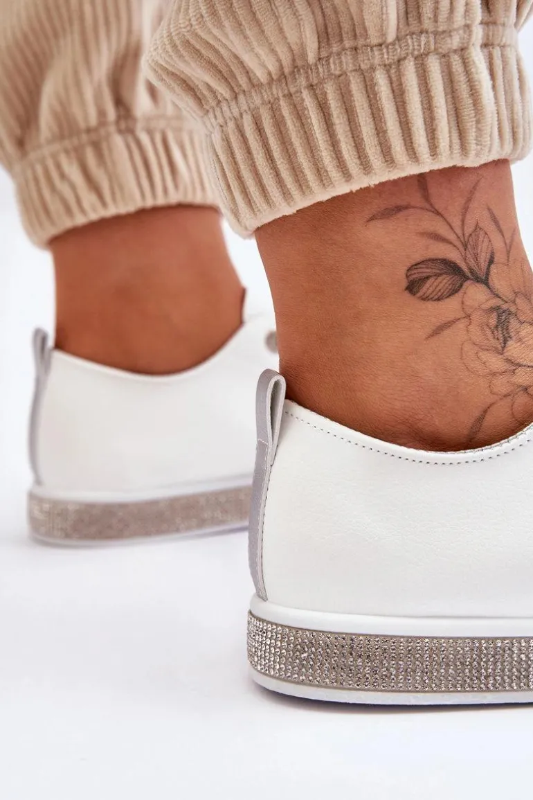 Niskie Trampki Damskie Z Dżetami Biało-Srebrne Demira