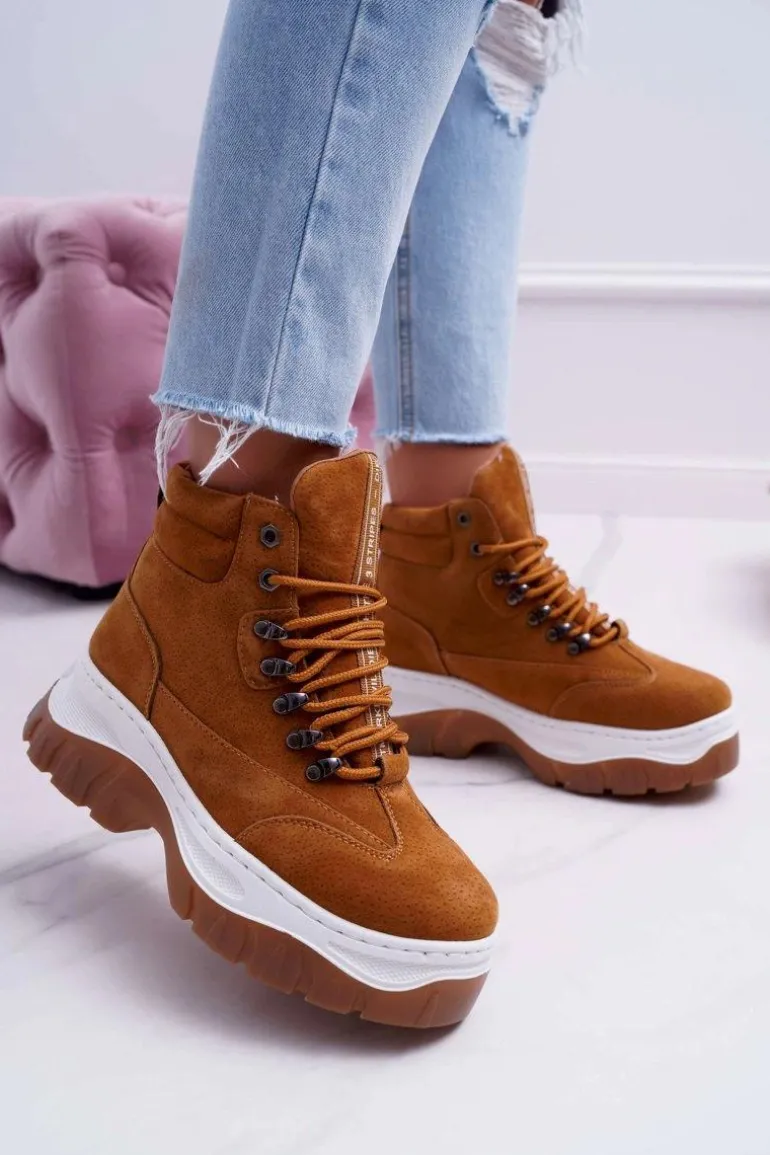 Damskie buty to nie tylko eleganckie szpilki. Czasami trzeba odetchnąć poza miastem. Wtedy przyda nam się solidne i trwałe obuwie! Przedstawiamy więc model, który łączy w sobie zalety obuwia trekkingowe a do tego świetnie wygląda. Gruba, antypoślizgowa podeszwa zapewniająca stabilność na każdej powierzchni w połączeniu z mocnym sznurowaniem to gwarancja komfortu. Wnętrze pokryte futerkiem z krótkim włosiem, które zapewni nam ciepło nawet w najchłodniejsze dni. Przy wyborze rozmiaru prosimy sugerować się tabelą rozmiarów, która dostępna jest po najechaniu bądź kliknięciu w dany rozmiar.