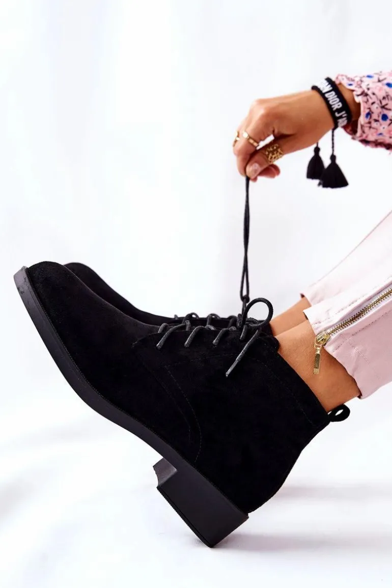 Piękne botki wykonane z eko zamszu. Posiadają wiązanie w kolorze obuwia oraz suwak ułatwiający zakładanie obuwia. Całość w środku jest ocieplona kocem obuwniczym. Płaski, niski obcas zapewni stabilność oraz komfort podczas długich spacerów. Sprawdź koniecznie naszą ofertę botków! Przy wyborze rozmiaru prosimy sugerować się tabelą rozmiarów.