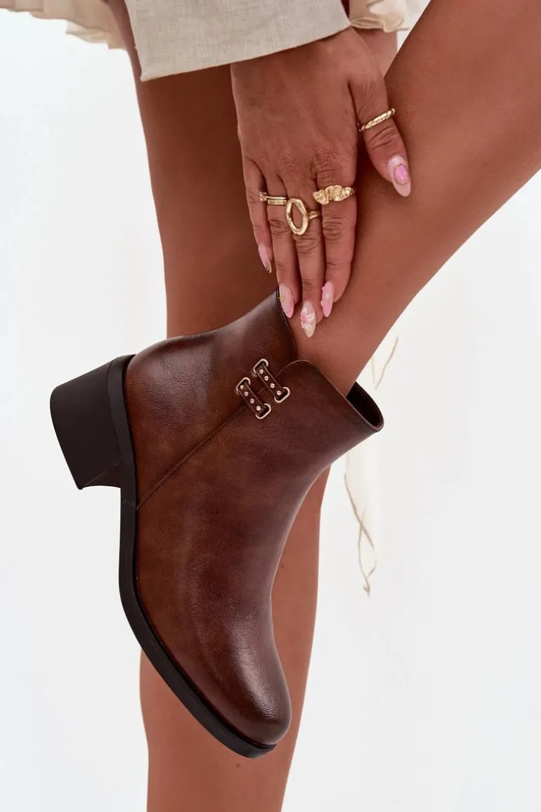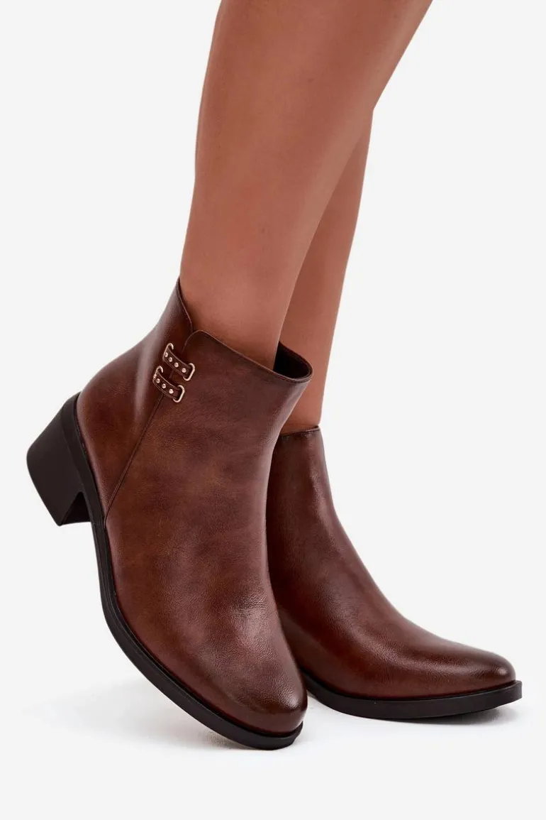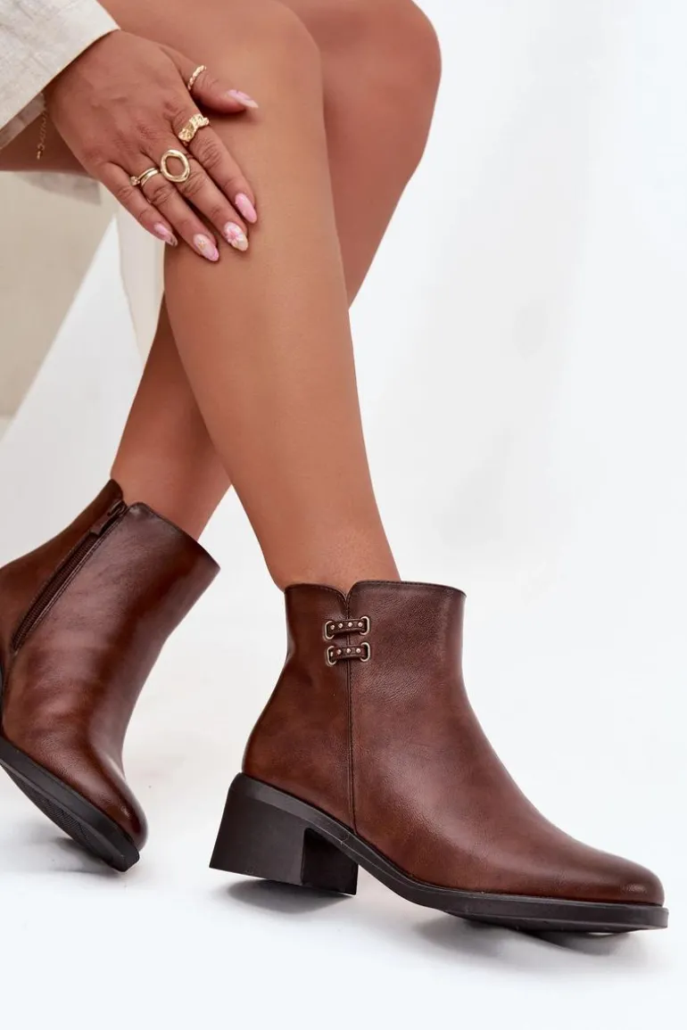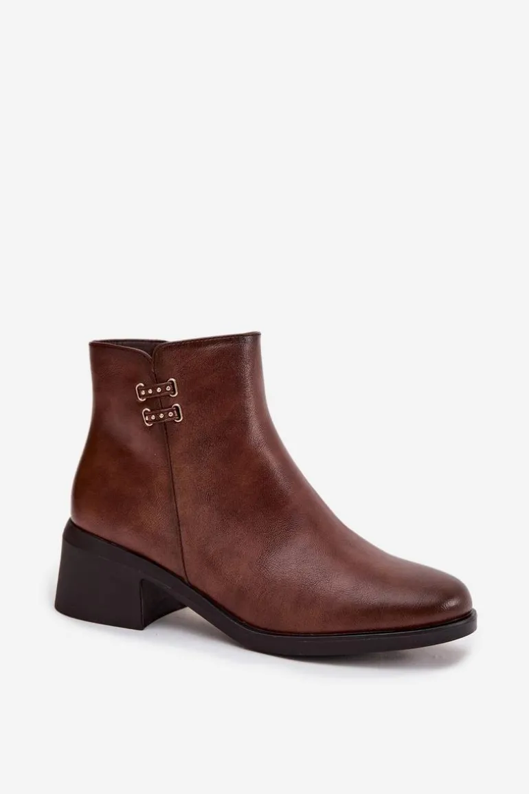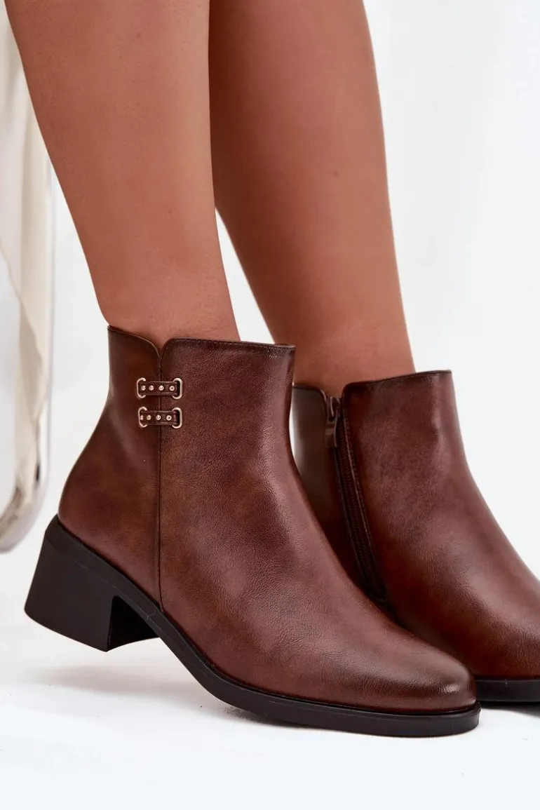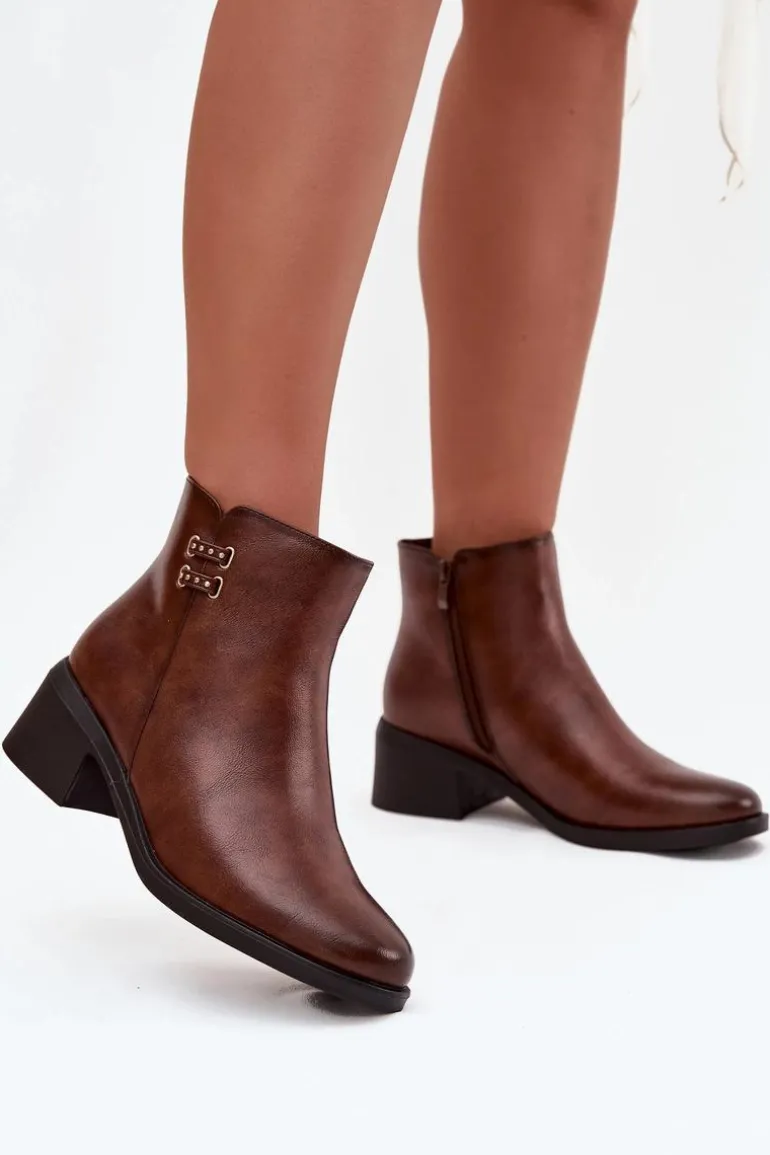 Ocieplane Botki Damskie Na Klocku Brązowe Delmira