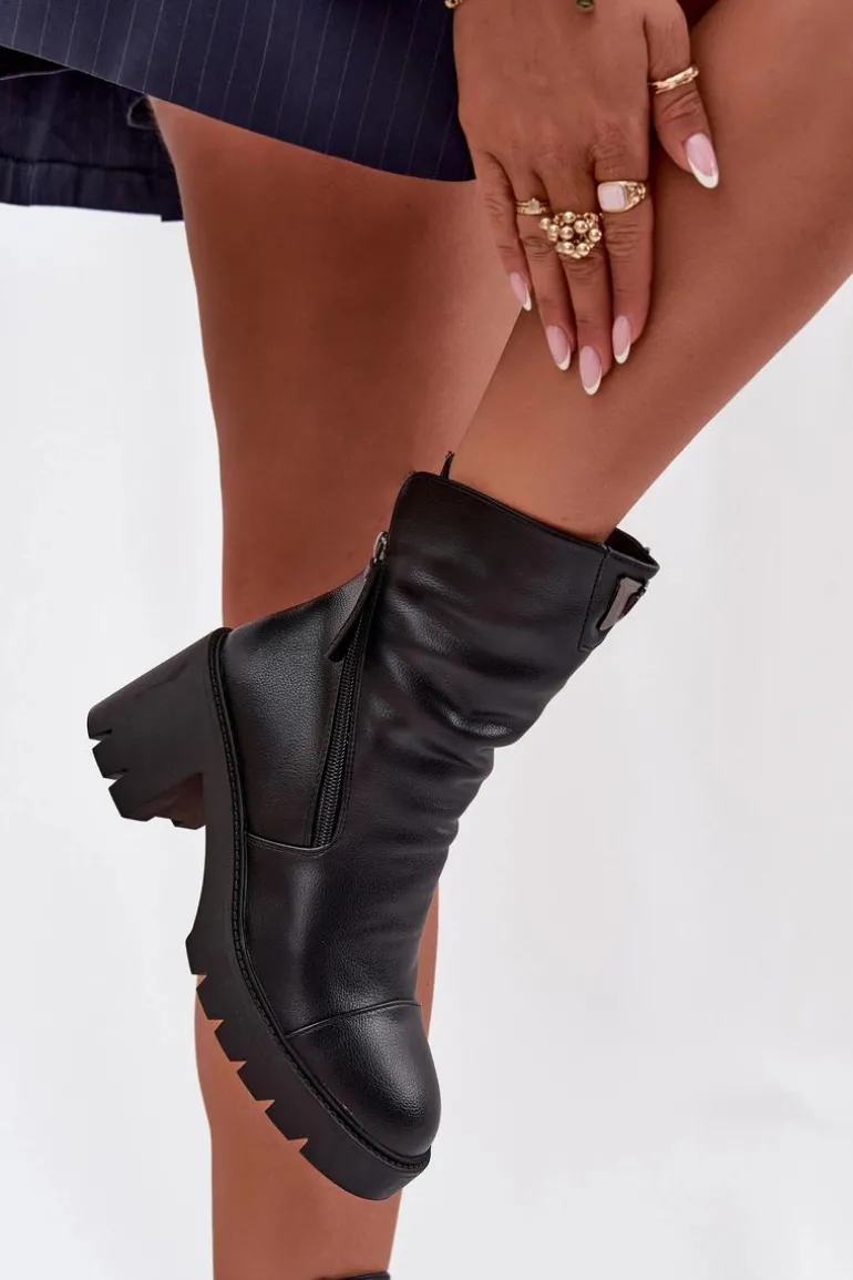 Botki damskie od marki Vinceza to połączenie wyrazistego stylu z praktycznym komfortem. Osadzone na masywnym obcasie, zapewniają stabilny krok i modny wygląd, a podwójny zamek umożliwia szybkie zakładanie. Model jest ocieplany, co gwarantuje ciepło w chłodniejsze dni, a subtelny detal i delikatne marszczenie cholewki dodają charakteru i oryginalnego, eleganckiego akcentu. Idealne do codziennych stylizacji, które łączą wygodę z modnym lookiem. Przy wyborze rozmiaru prosimy sugerować się tabelą rozmiarów.