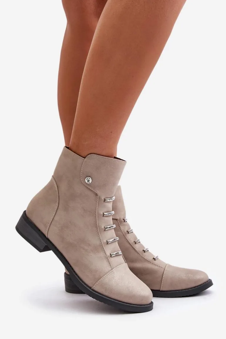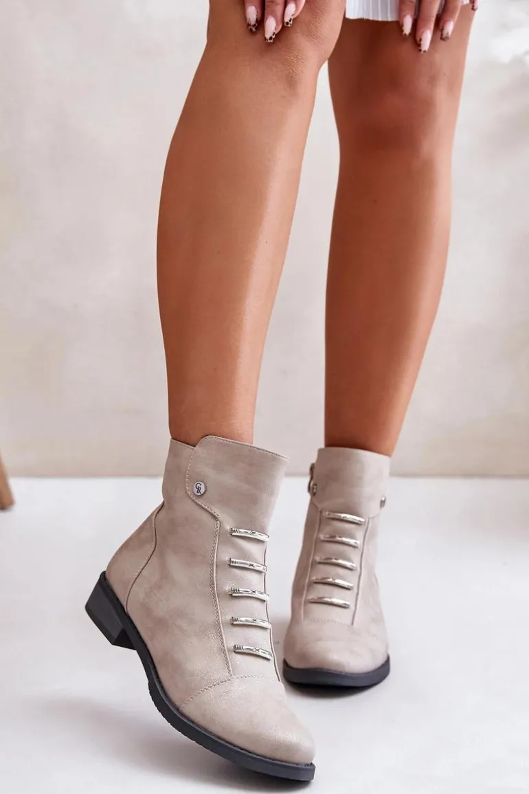 Botki marki Jezzi wykonane z eko skóry, które łączą styl z wygodą. Osadzone na płaskim obcasie, z zaokrąglonymi noskami, zapewniają komfort noszenia na co dzień. Model zapinany na zamek, co ułatwia zakładanie i zdejmowanie. Wnętrze ocieplane kocem obuwniczym, idealne na chłodniejsze dni. Te botki to świetny wybór na jesienne i zimowe stylizacje.Przy wyborze rozmiaru prosimy sugerować się tabelą rozmiarów.