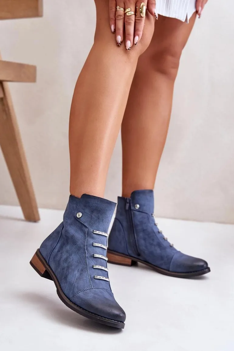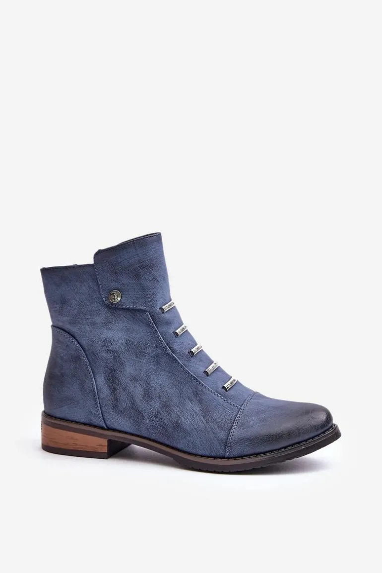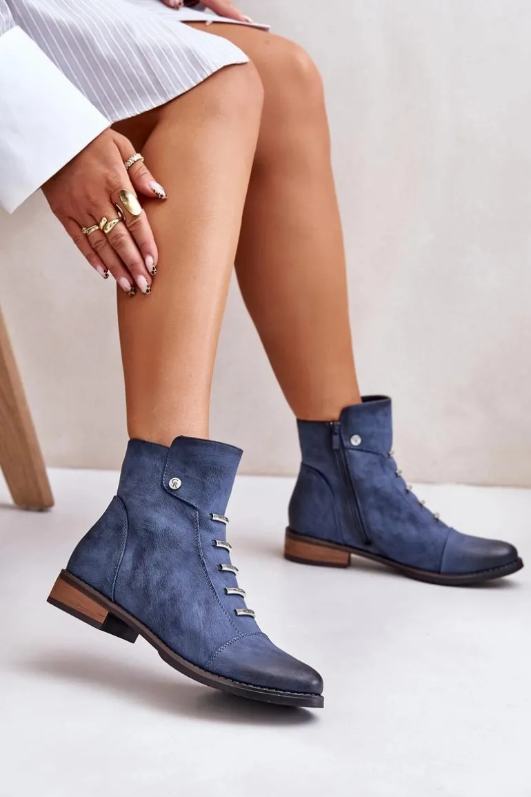 Ocieplane Botki Damskie Na Płaskim Obcasie Niebieskie Labise