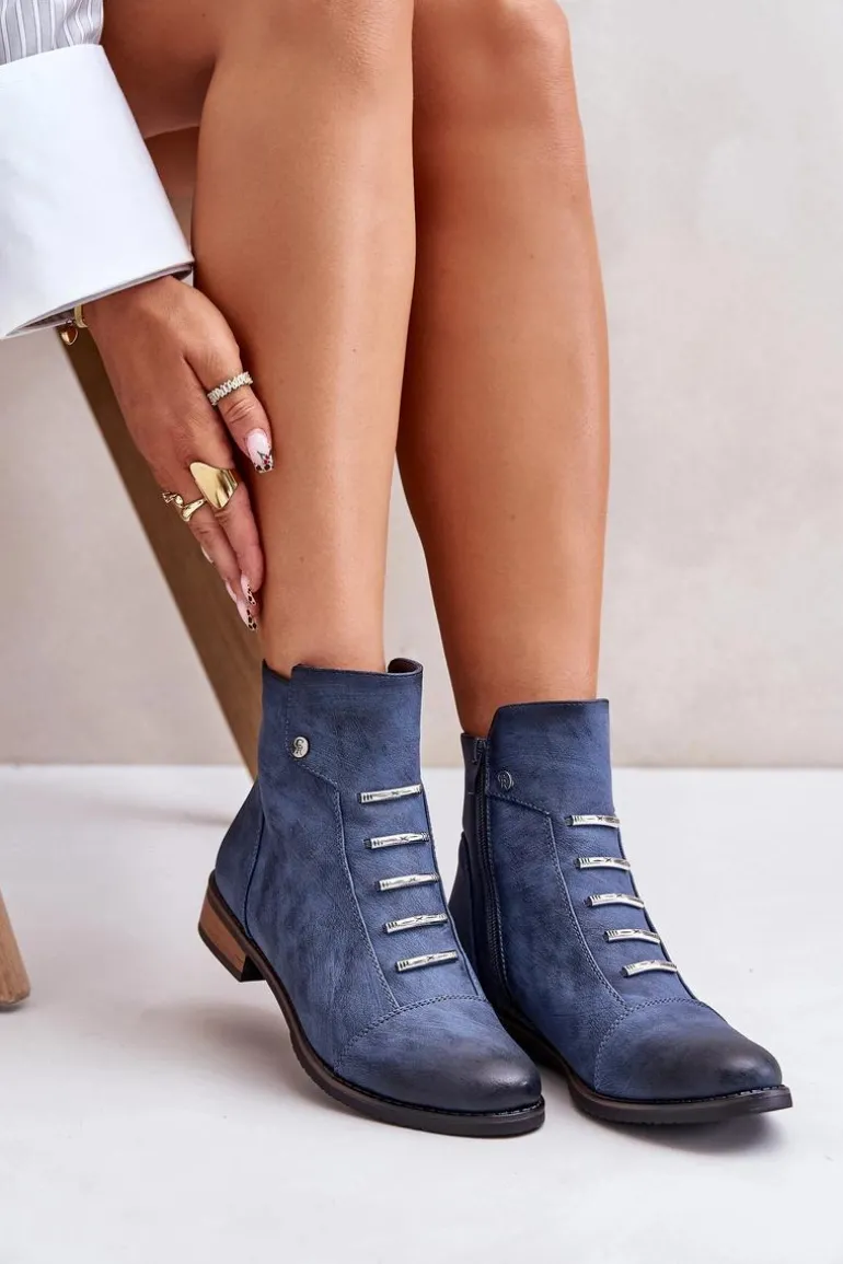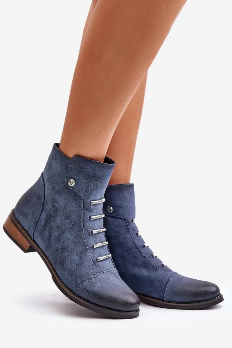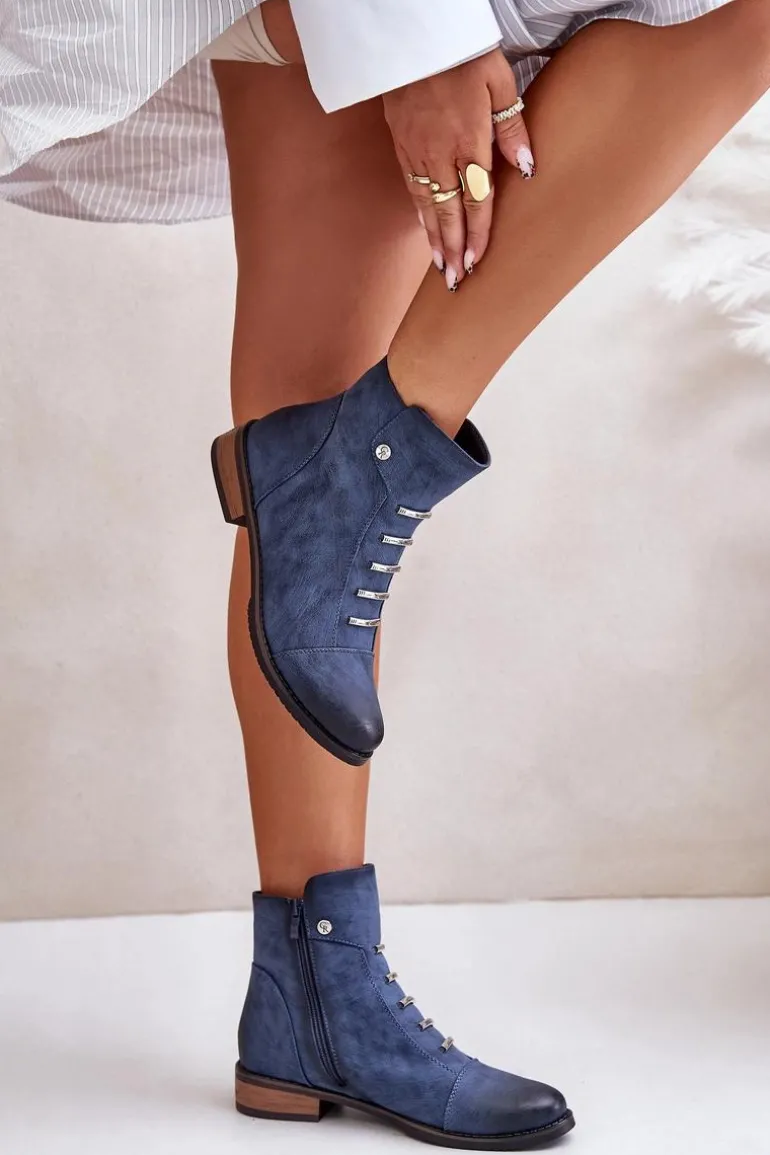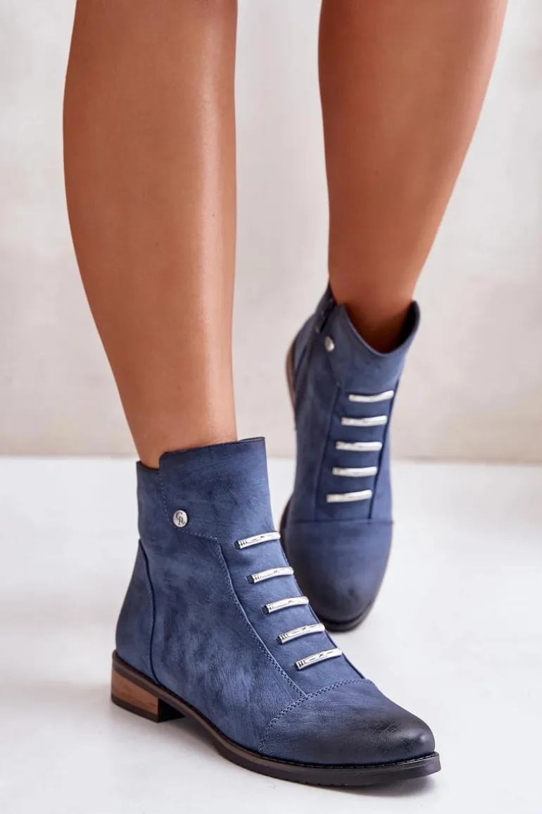 Ocieplane Botki Damskie Na Płaskim Obcasie Niebieskie Labise